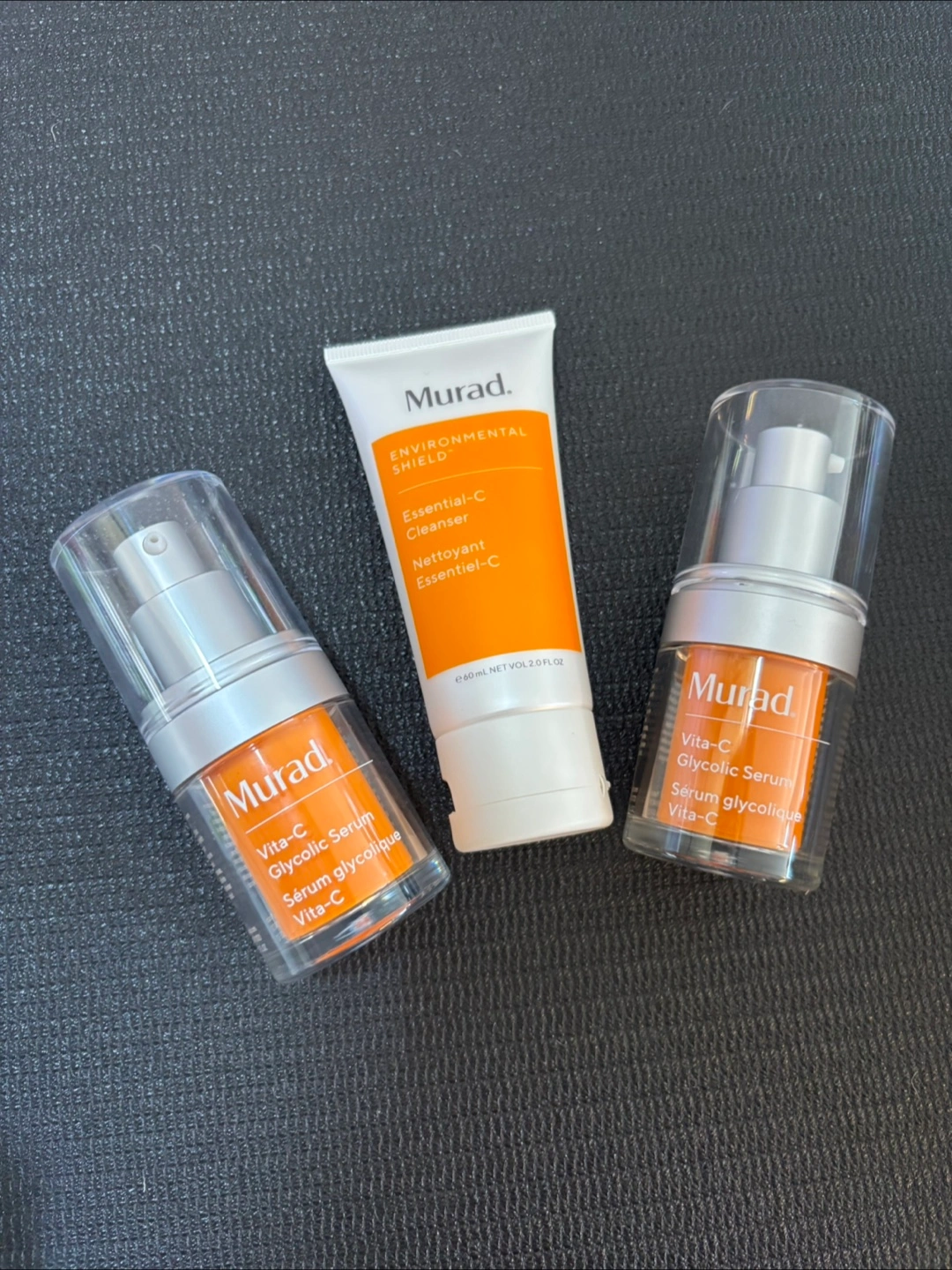 Selling a Murad skincare set! You'll get two Vita-C Glycolic Serums and an Essential-C Cleanser. The cleanser is great for removing impurities and leaving your skin feeling refreshed.