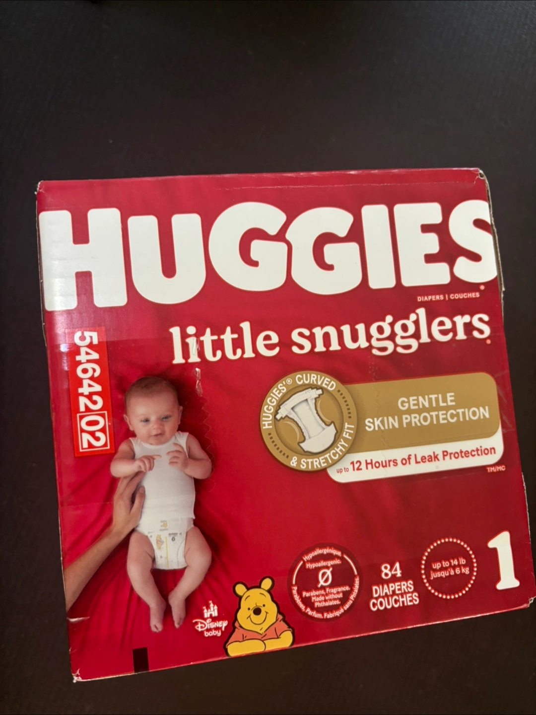 Selling a box of Huggies Little Snugglers diapers in size 1. The box contains 84 diapers, perfect for gentle skin protection and up to 12 hours of leak protection. They're designed with a curved and stretchy fit for your little one. Comes from a smoke-free home!