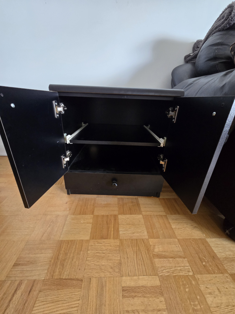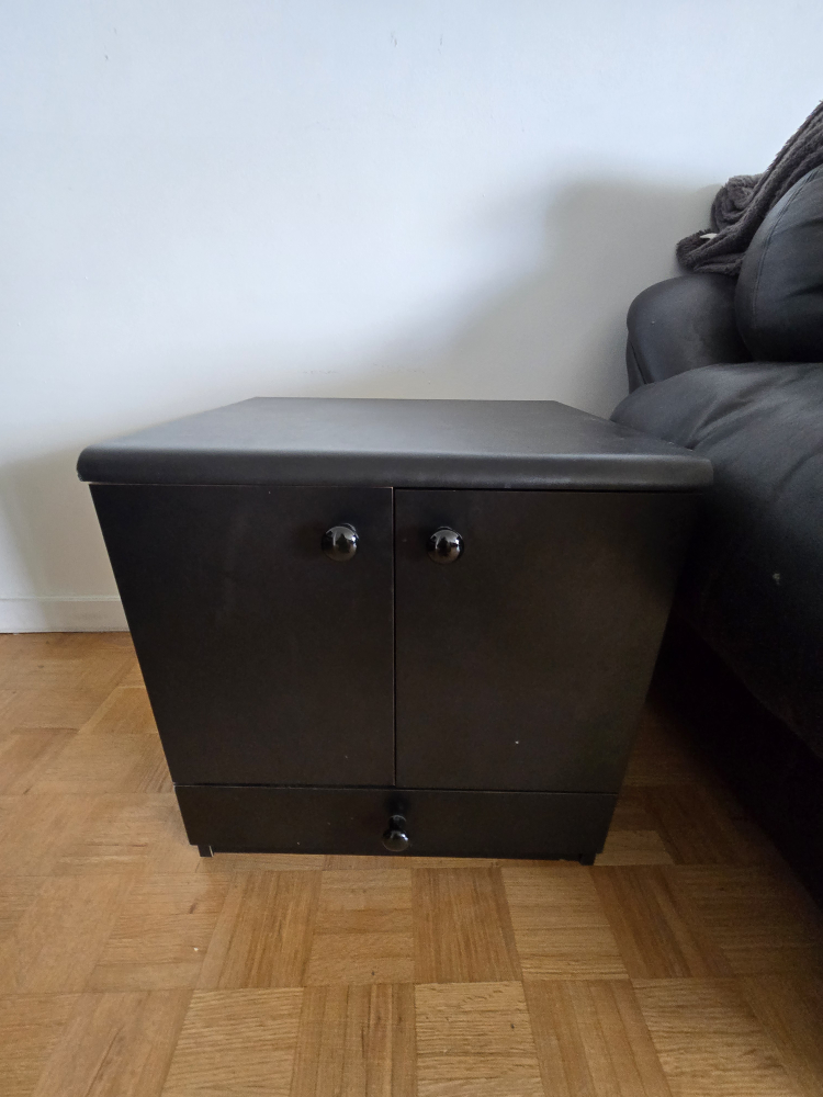 1 / 51 / 5Buy & SellBlack Cabinet Side TableBlack Cabinet Side Table$18Selling a black cabinet side table. It has a drawer and a cabinet with two doors. It's in great condition and ready for a new home!ConditionLike newWHERE TO MEETBathurst Sheppard plazaView MapSELLERverifiedZackBathurst Manor15910 reviews0 chats·1 favorites·40 viewsSEND CHAT TO SELLERHi Zack! I’m interested in your listing.Hi Zack! I’m interested in your listing.Get the Karrot app to chatSign In to chat