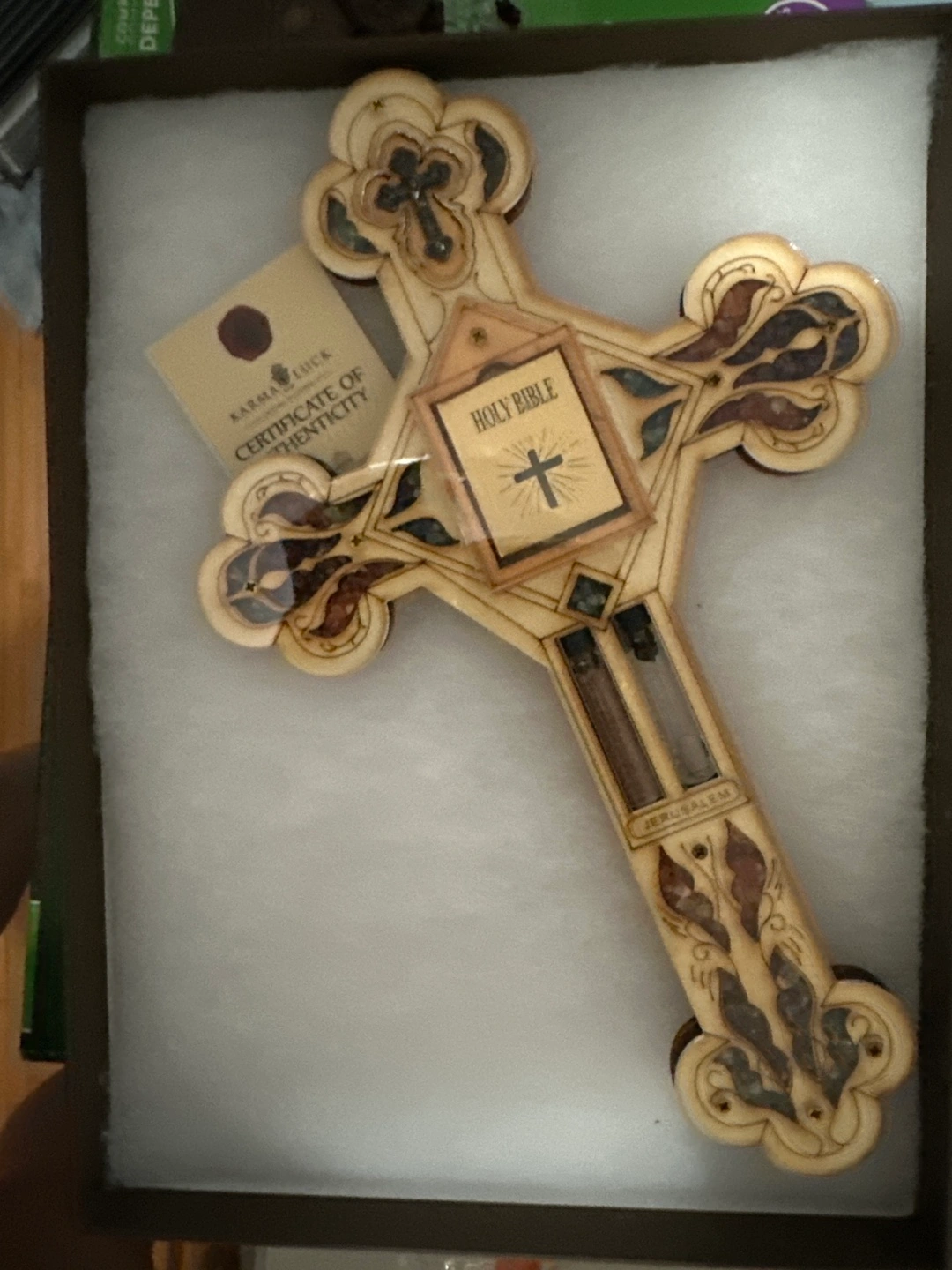 Selling a Karma and Luck Cross, complete with its original box and certificate of authenticity! This unique piece features intricate details and a beautiful design, making it a meaningful addition to any home. It's in excellent condition and ready to find a new home