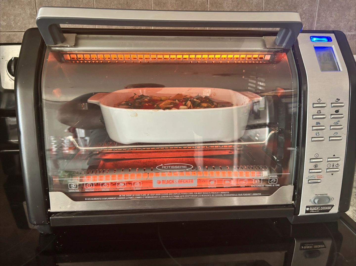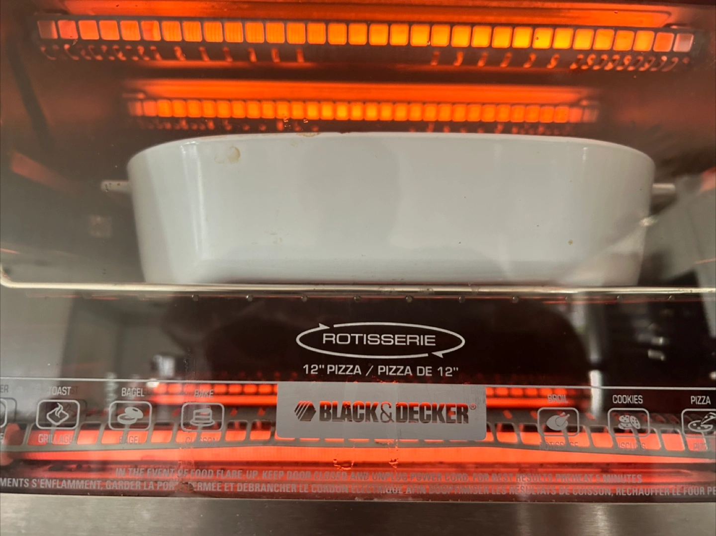 Selling a Black & Decker toaster oven! It has a rotisserie function and fits a 12" pizza. Convection future cook for evenly. Perfect for small kitchens or anyone who wants an extra oven. Rarely used. Perfect condition.
