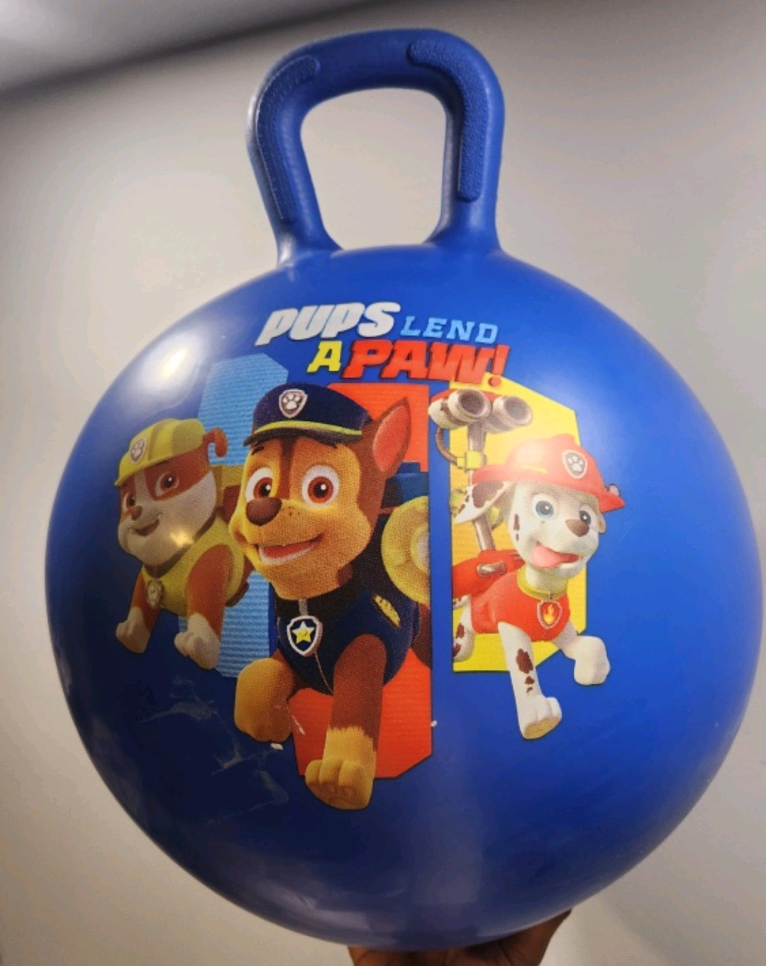 Selling a Paw Patrol hopper ball! Great for active kids who love to bounce around. It's in good condition and features Chase, Marshall, and Rubble. Perfect for indoor or outdoor fun!