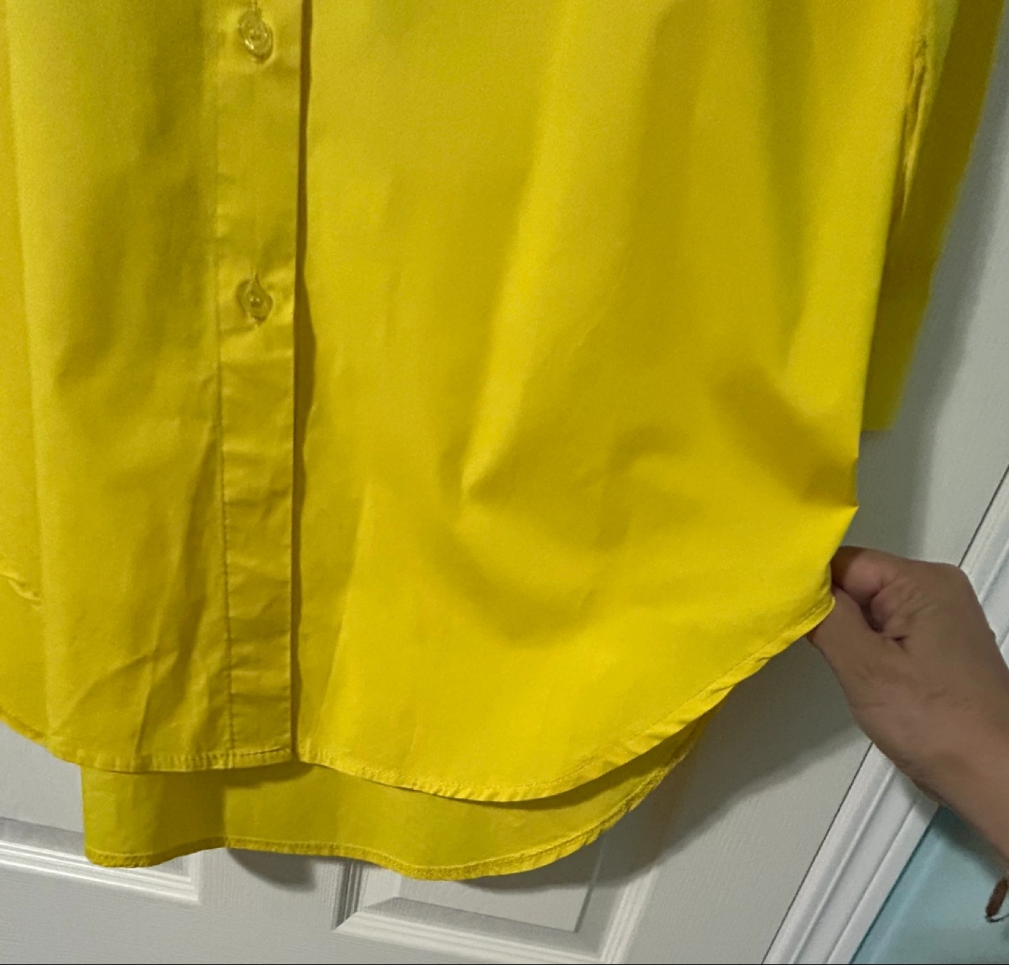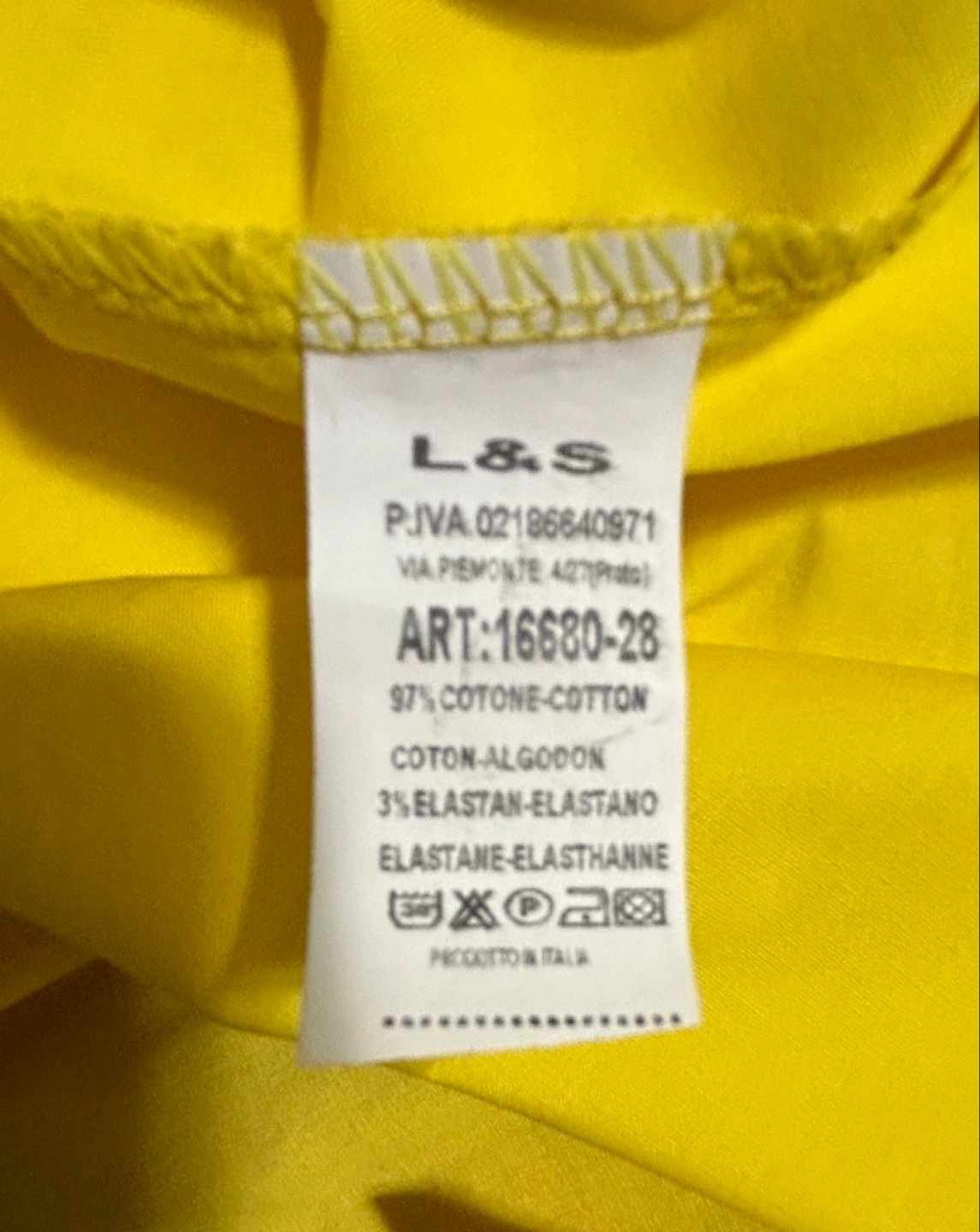 New from Europe yellow shirt from L&S! It's made of 97% cotton and 3% elastane. Made in Italy. Soft with stretch