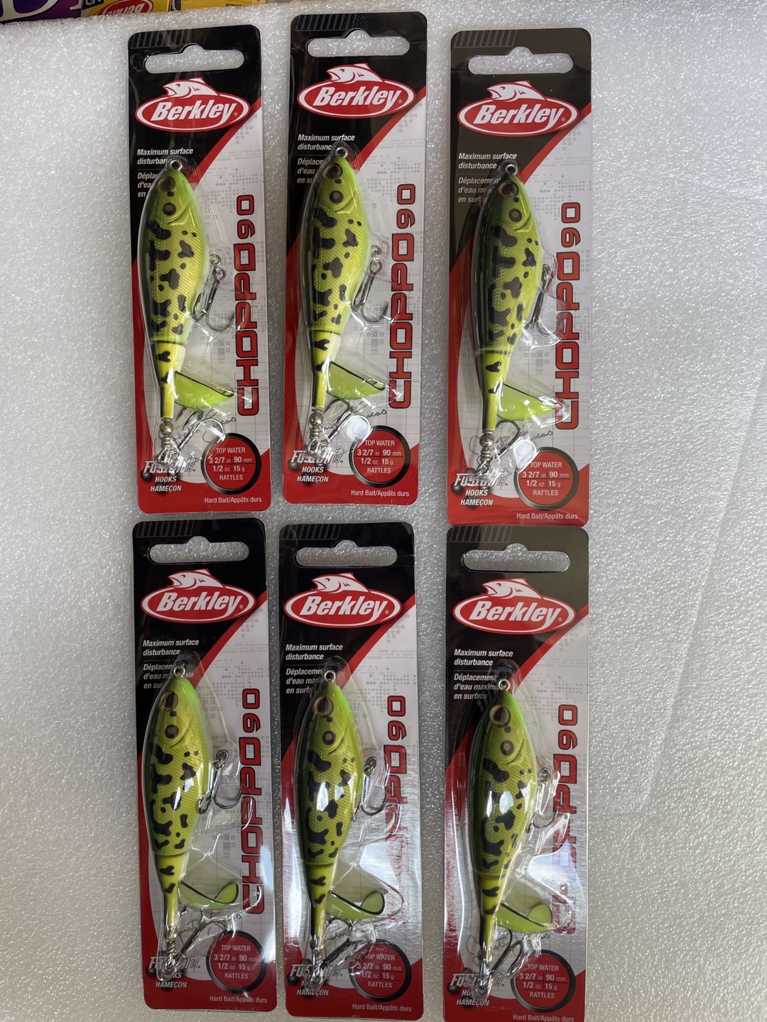 I'm selling a brand new Berkley Choppo 90 Top Water Lure! It's designed for maximum surface disturbance and features Fusion19 hooks and hard bait rattles. This top water lure measures 3 1/2" or 90 mm and weighs 1/2 oz or 15 g
