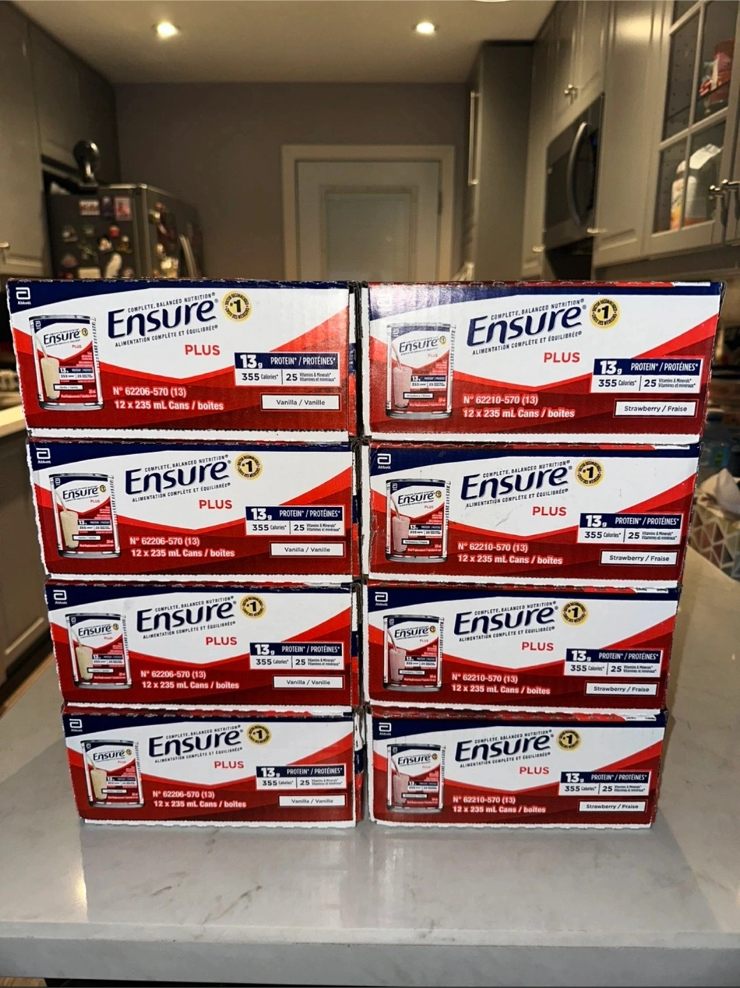 Selling 8 cases of Ensure Plus cans. I’m asking $120 for the 8 cases. I have 4 cases of strawberry and 4 vanilla cases available. Pick up or delivery available if you are located nearby Jane and Dundas. Retail value: $315.82