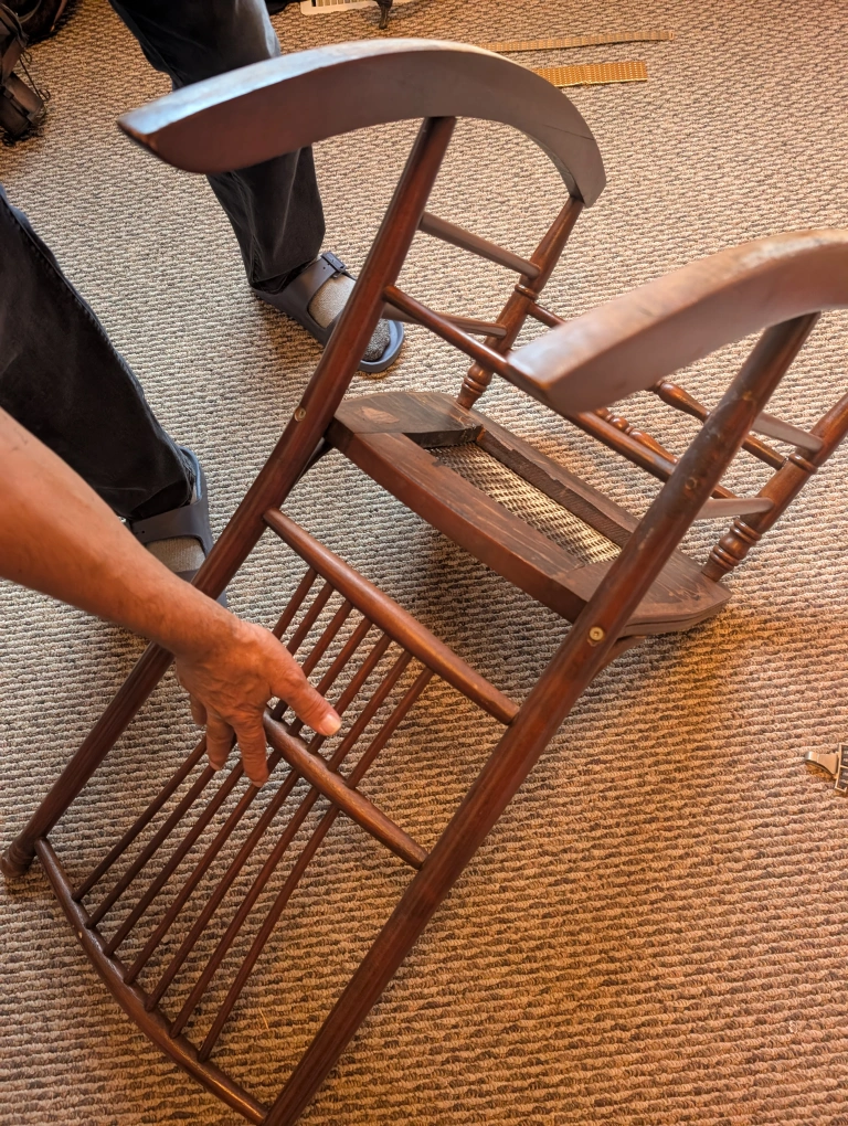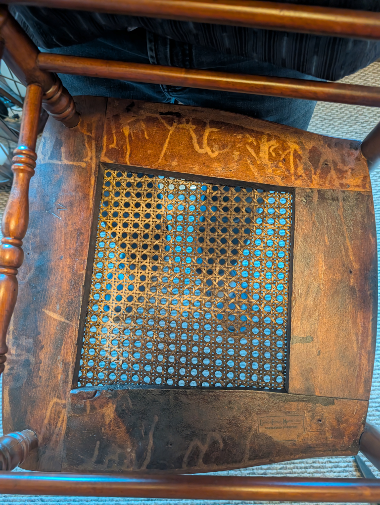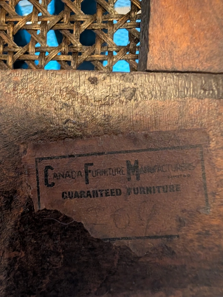 Selling a vintage rocking chair from Canada Furniture Manufacturers. It has a wood frame and a woven seat. It good condition considering its age , but it's still a sturdy and unique piece! great addition to any home or collection 160$ or best offer
