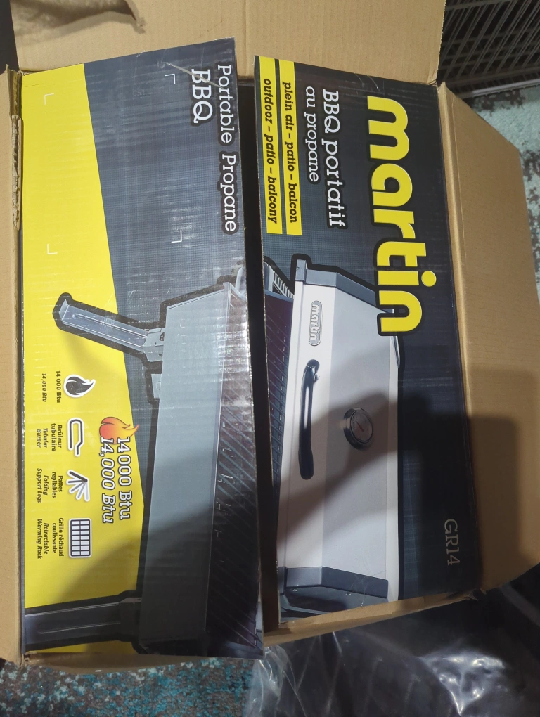 Selling a brand new Martin portable propane BBQ, new still in its original box! This BBQ is perfect for outdoor patios and balconies. It delivers 14,000 BTU for great grilling. Get ready for summer cookouts!