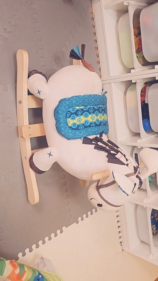 A cute rocking horse plush toy for little ones! It's in good condition and ready for a new home. Perfect for hours of fun and imaginative play for your child