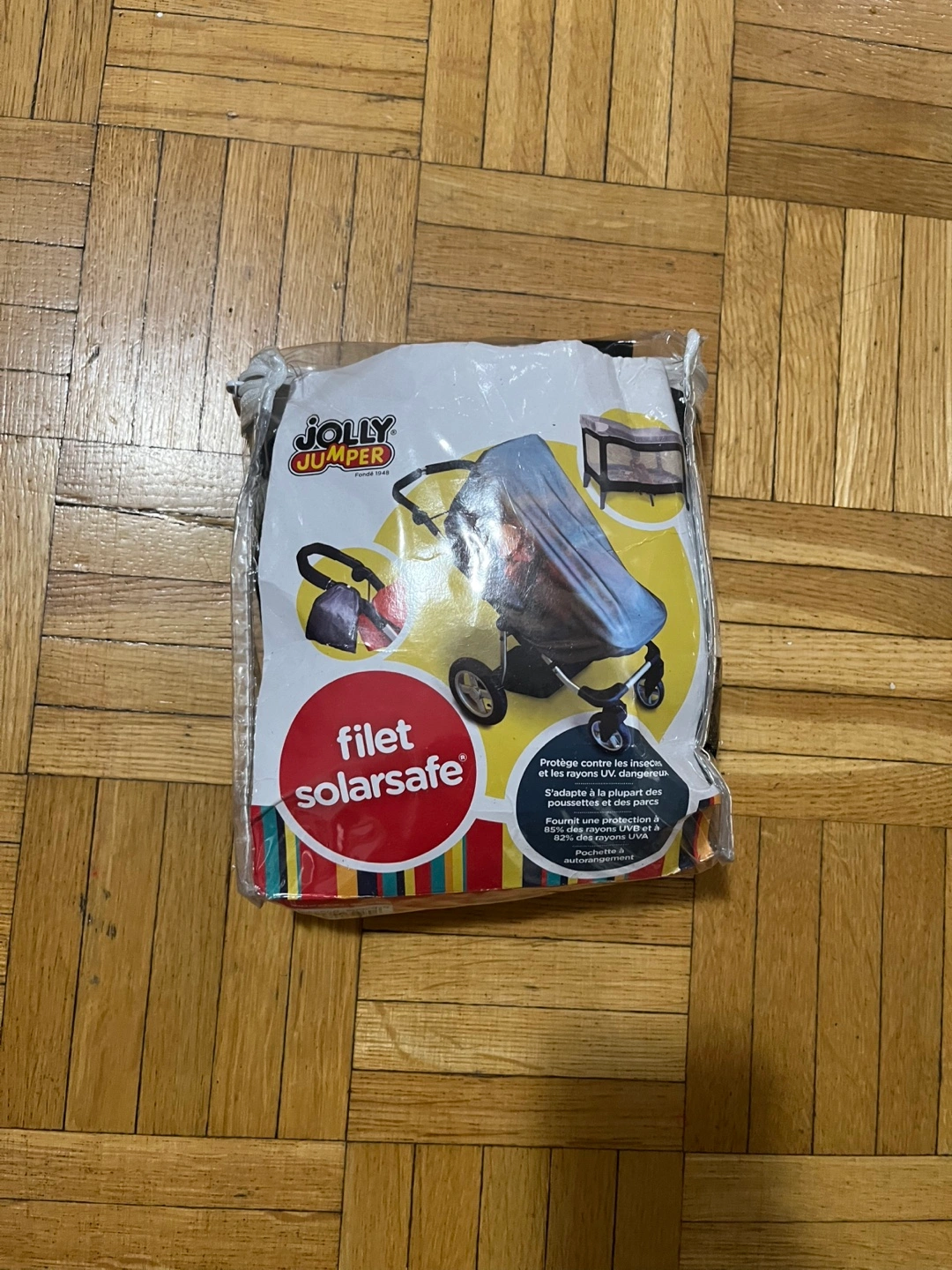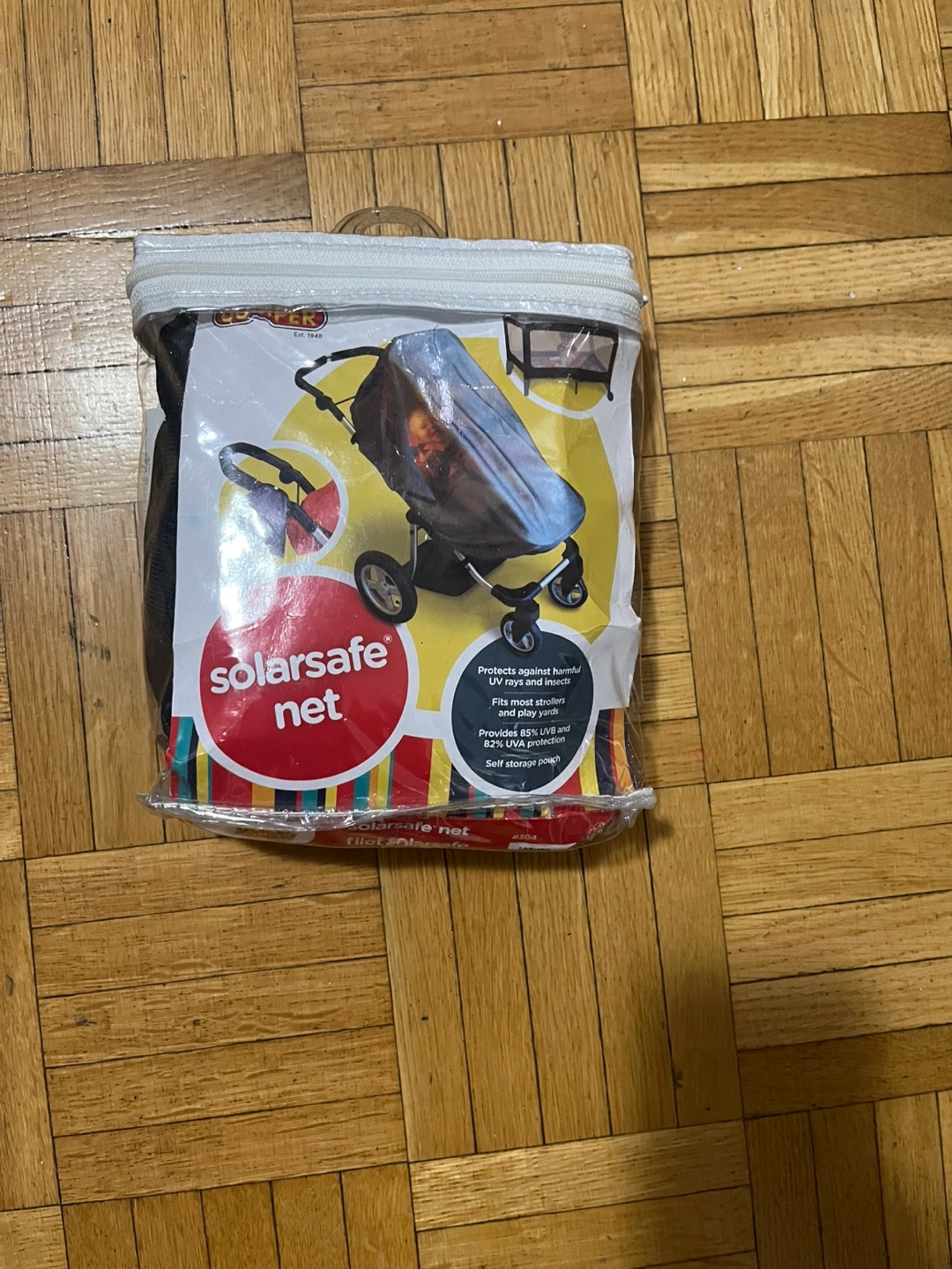 Keep your little one protected from the sun with this Jolly Jumper SolarSafe Net! It fits most strollers and provides 85% UVB and 82% UVA protection. Comes in its original packaging with a self-storing pouch, making it super convenient to carry around