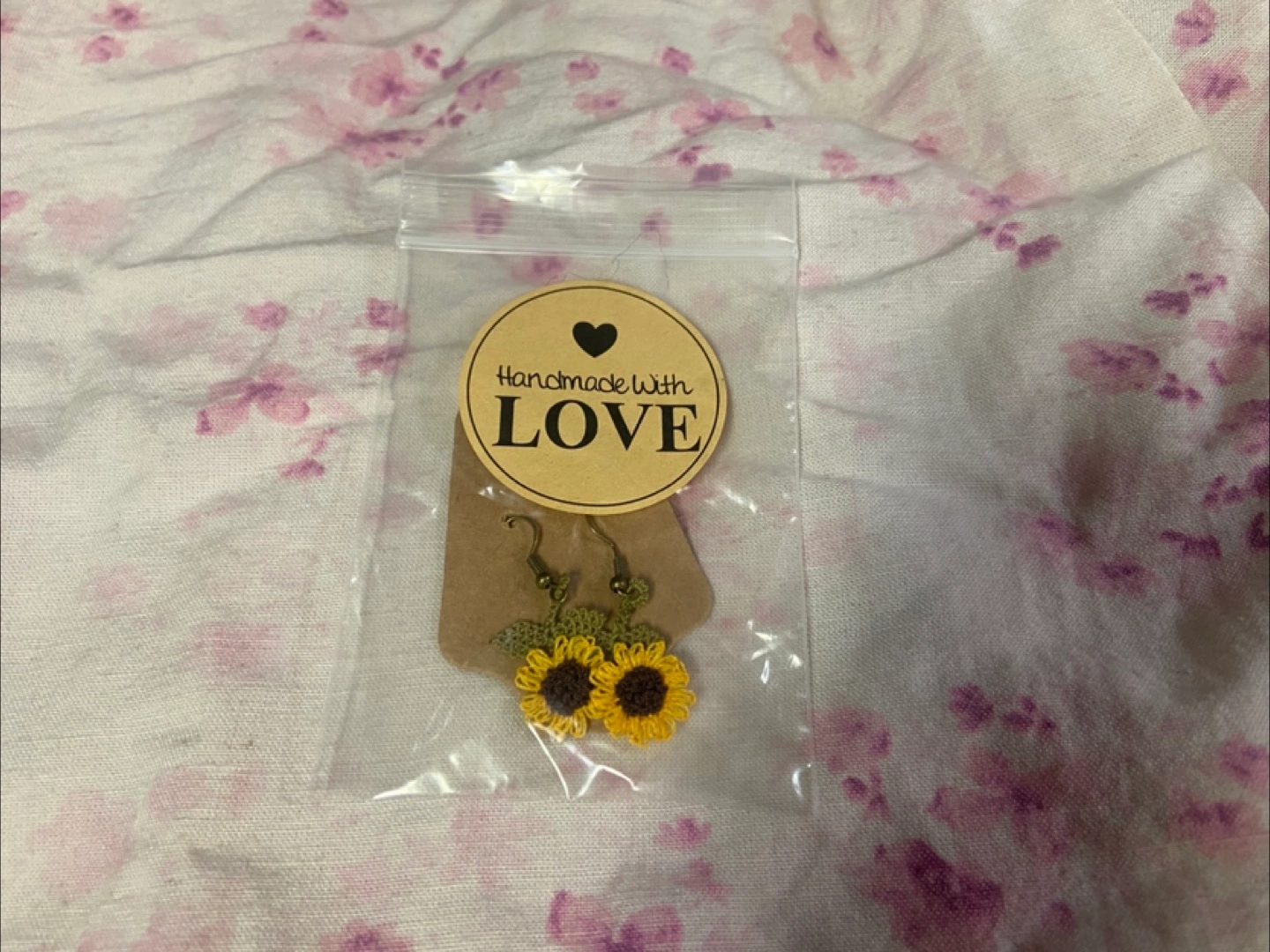 Handmade crochet sunflower earrings