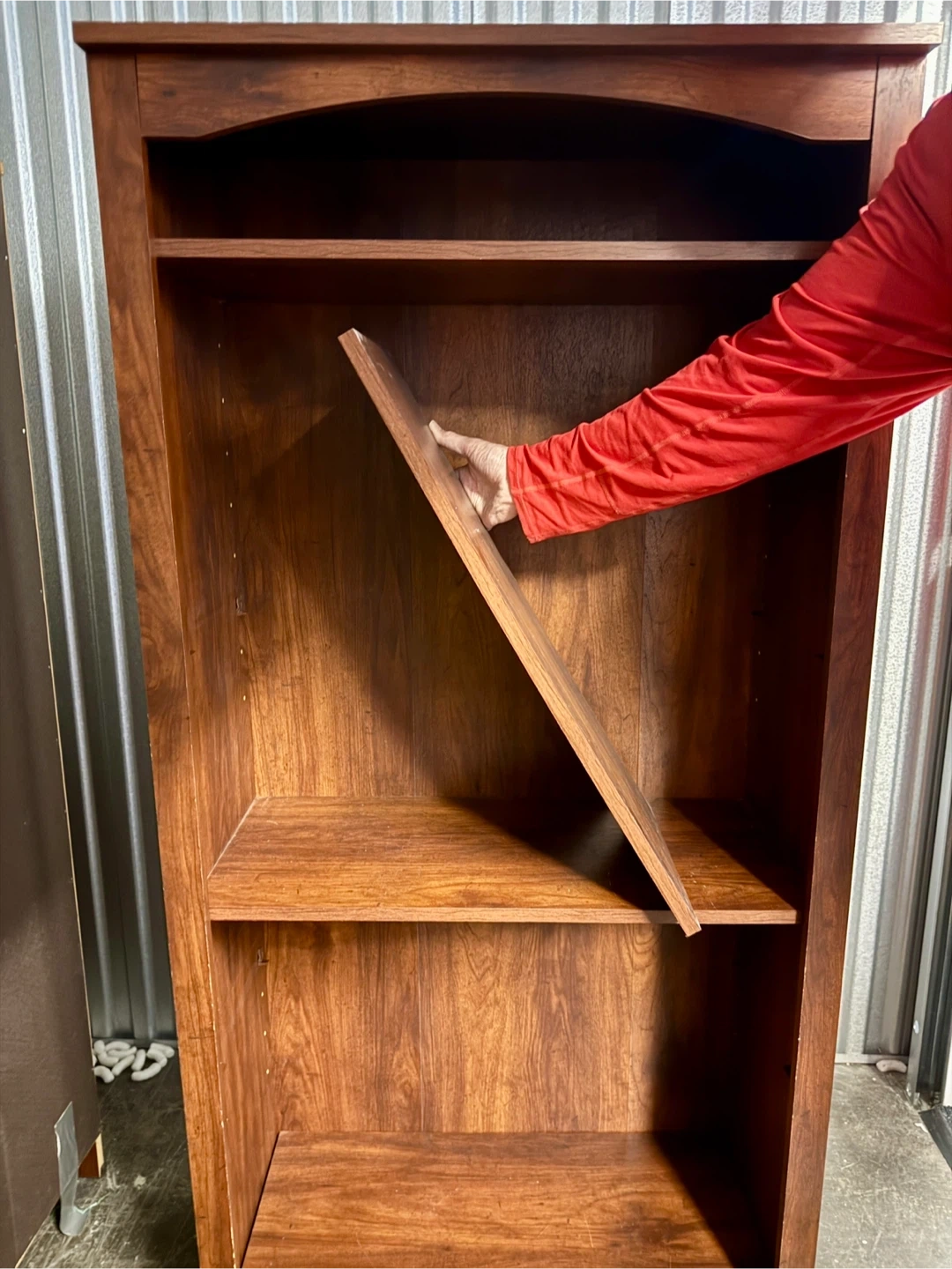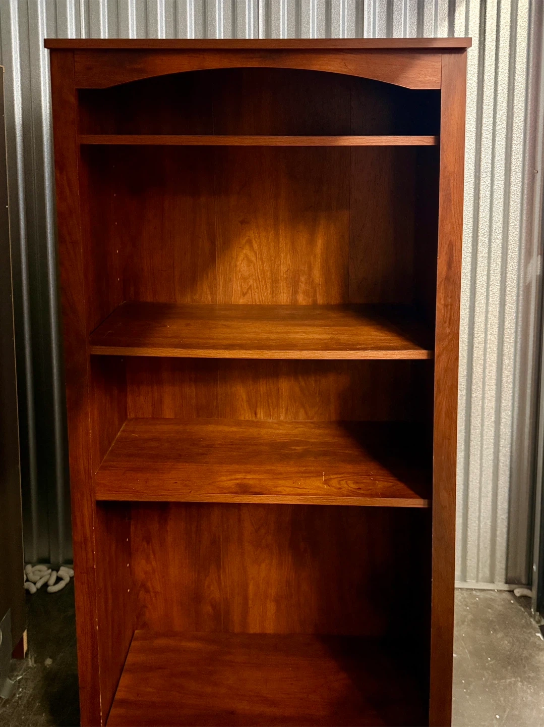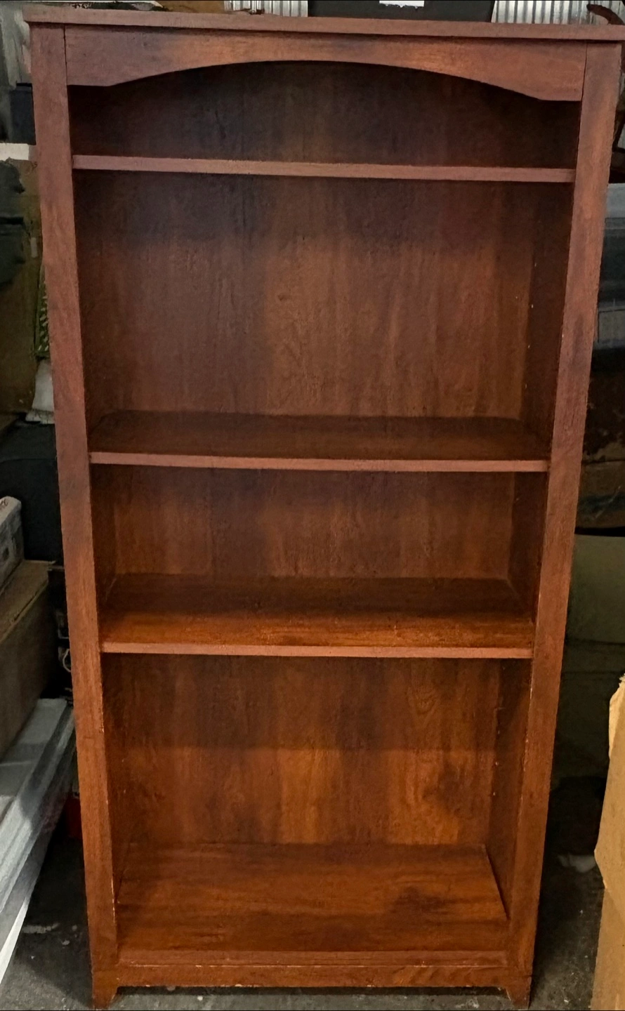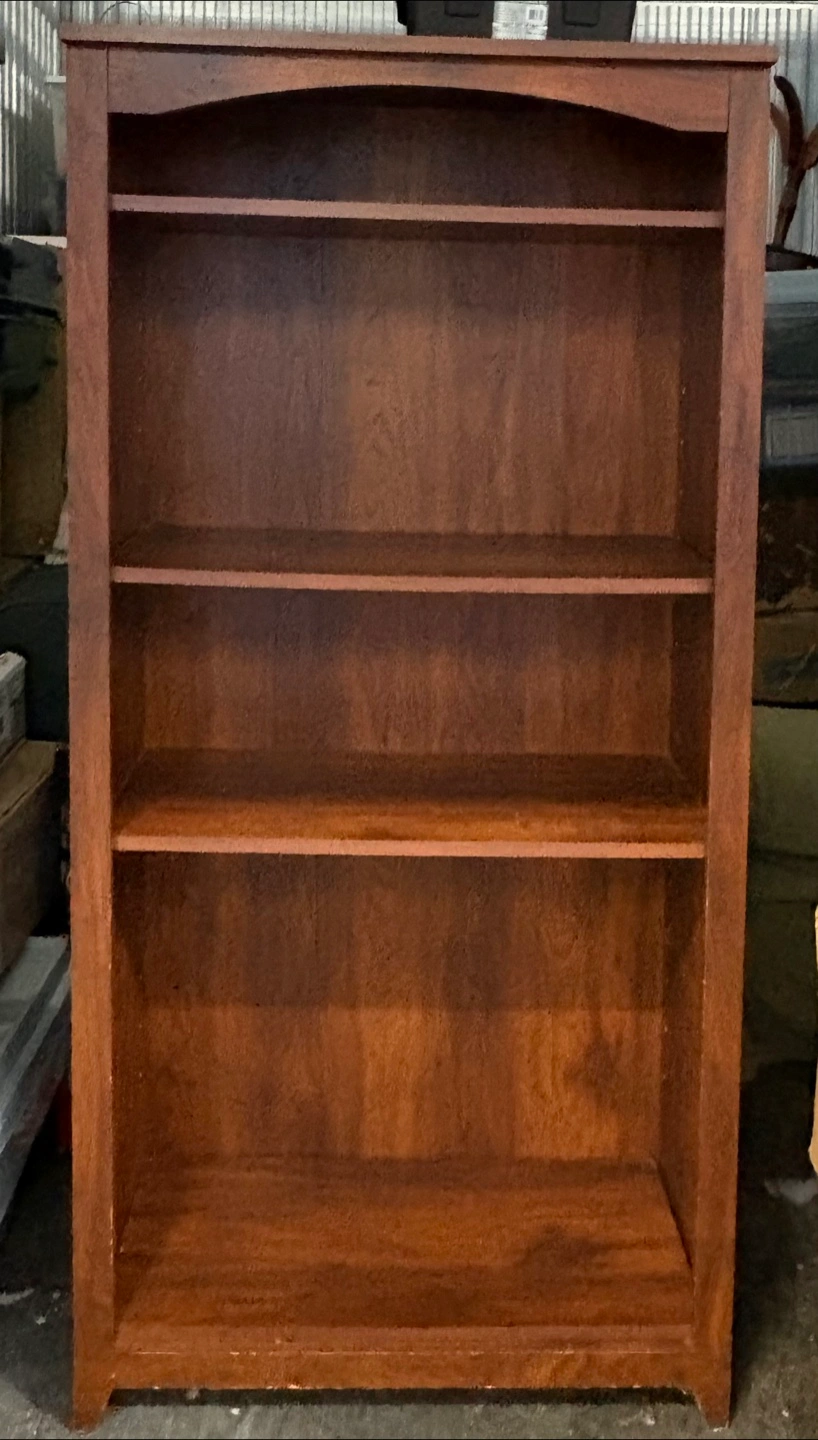 Selling 2 wooden bookcases in very good condition. They feature three shelves, perfect for storing books or displaying items. The bookcases have a classic design and a warm wood tone that could complement any room! Dimensions are