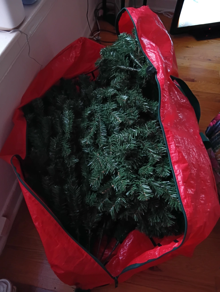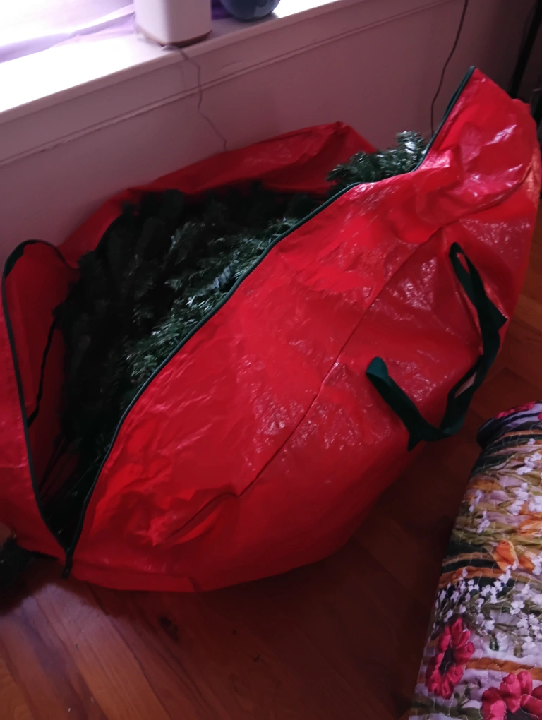 🥕🥕🥕🥕Selling an artificial Christmas tree. It comes in a red bag for easy storage. Perfect for the upcoming holiday season but doesn't come with a stand. No lights. It's too large for my tiny, studio apartment.