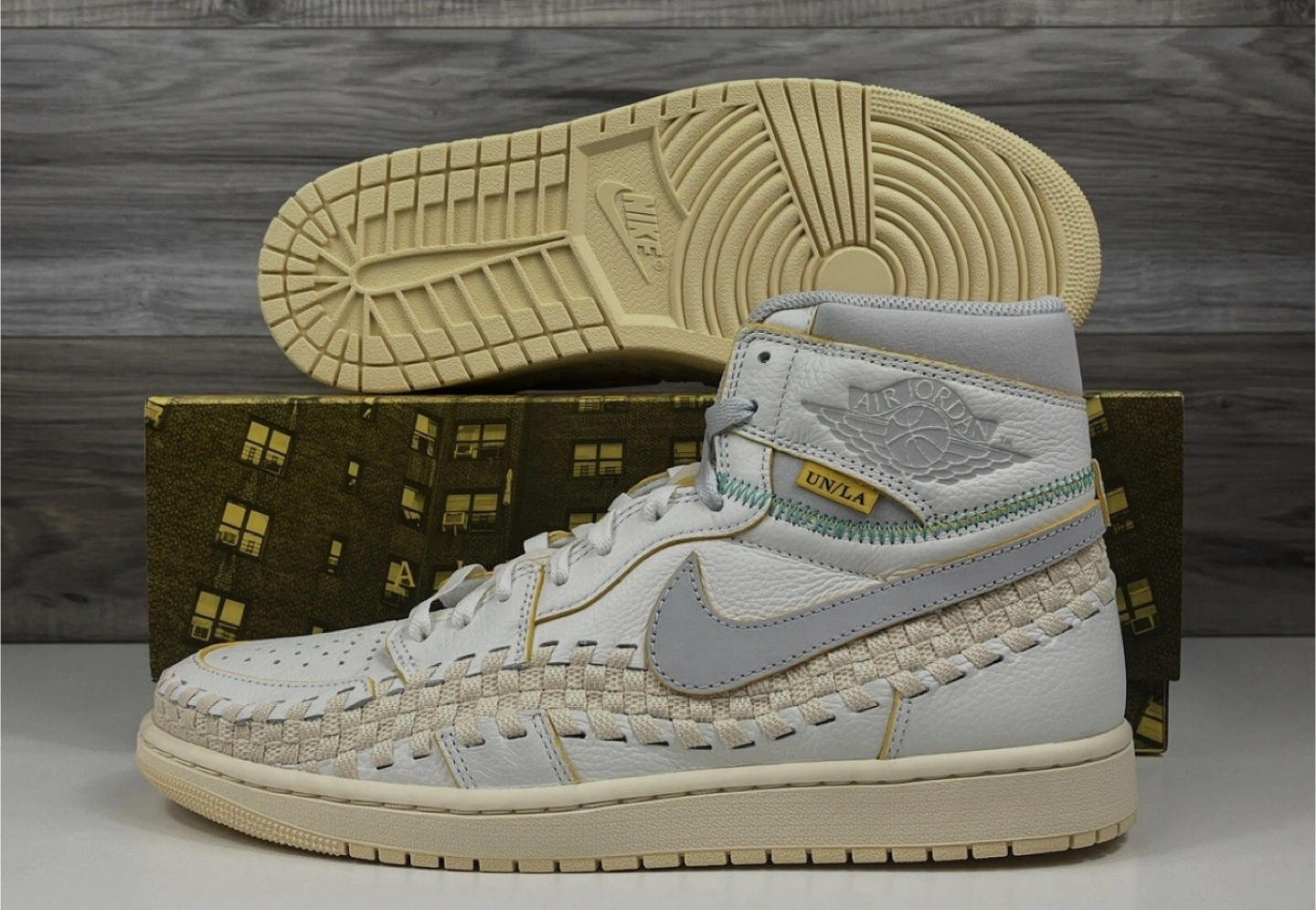 Selling a pair of Air Jordan 1 Retro HI OG SP x Union sneakers in size 10.5. They come in a sail/neutral grey-muslin-pale vanilla colourway. Perfect for any sneakerhead!
