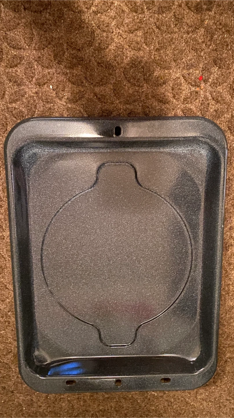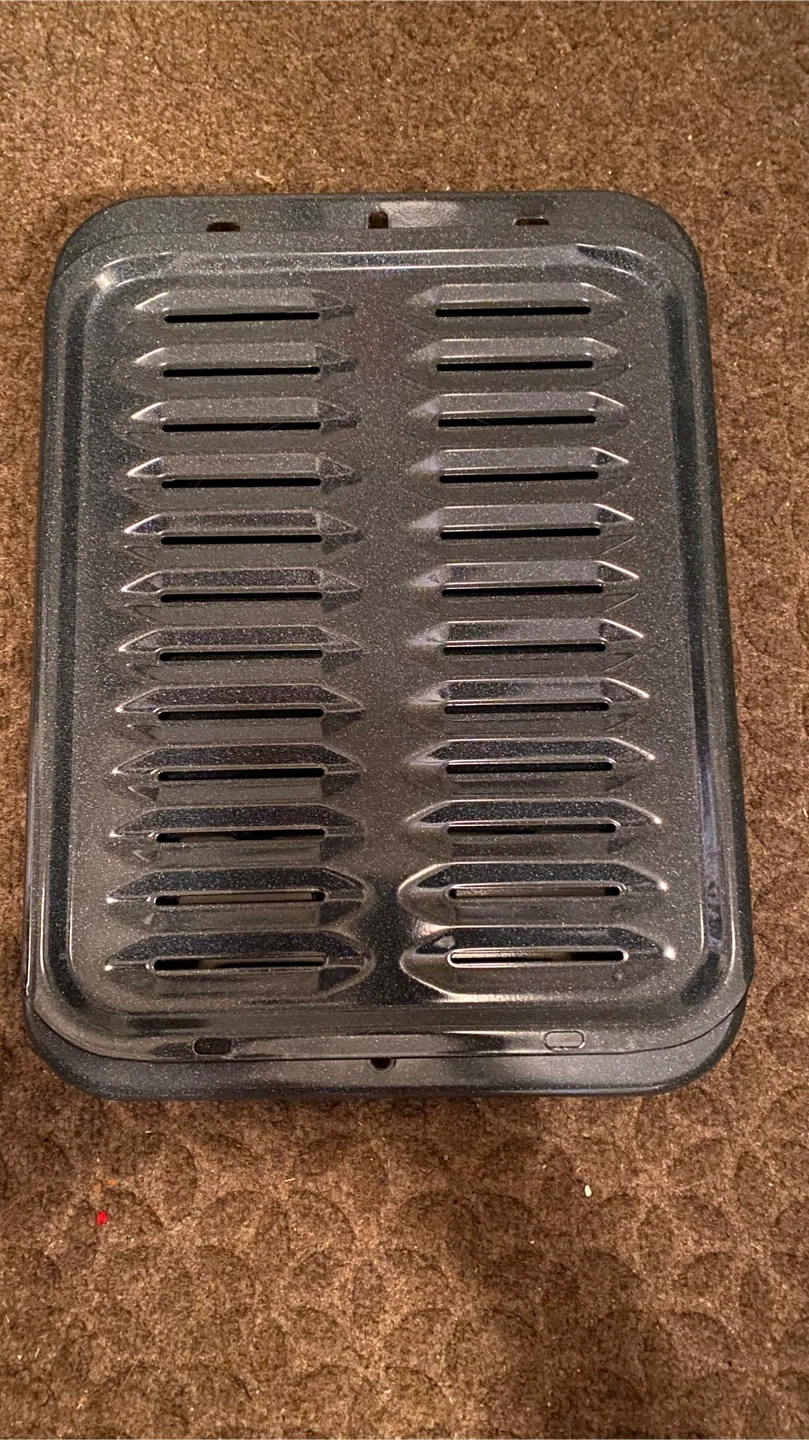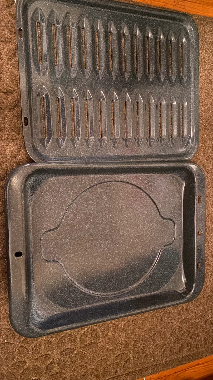 This set includes a grill pan and a drip tray. The grill pan has a slatted surface for even cooking. The drip tray collects grease and juices. It's a useful addition for grilling indoors!