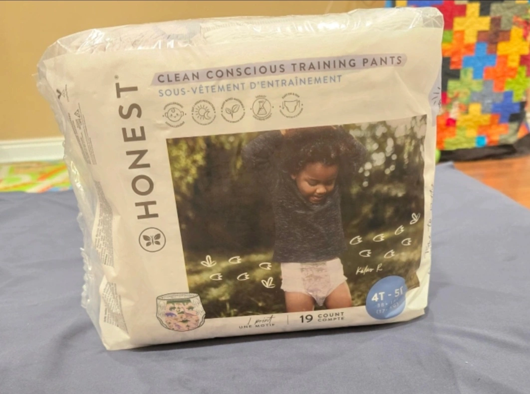 Selling a pack of Honest Clean Conscious Training Pants, size 4T-5T. There are 19 training pants in the pack. Perfect for your little one!