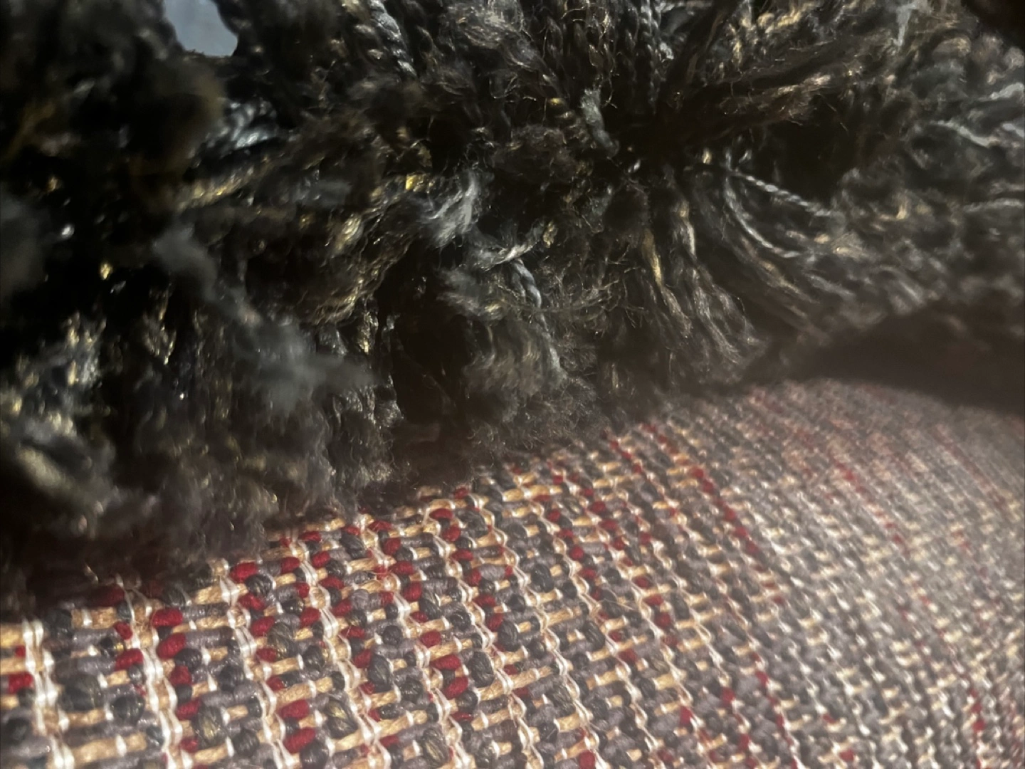 It is a high pile carpet and nice rich color tone to it. Good warm rug for any room. Nothing wrong with it however, It needs a good vacuum to it.