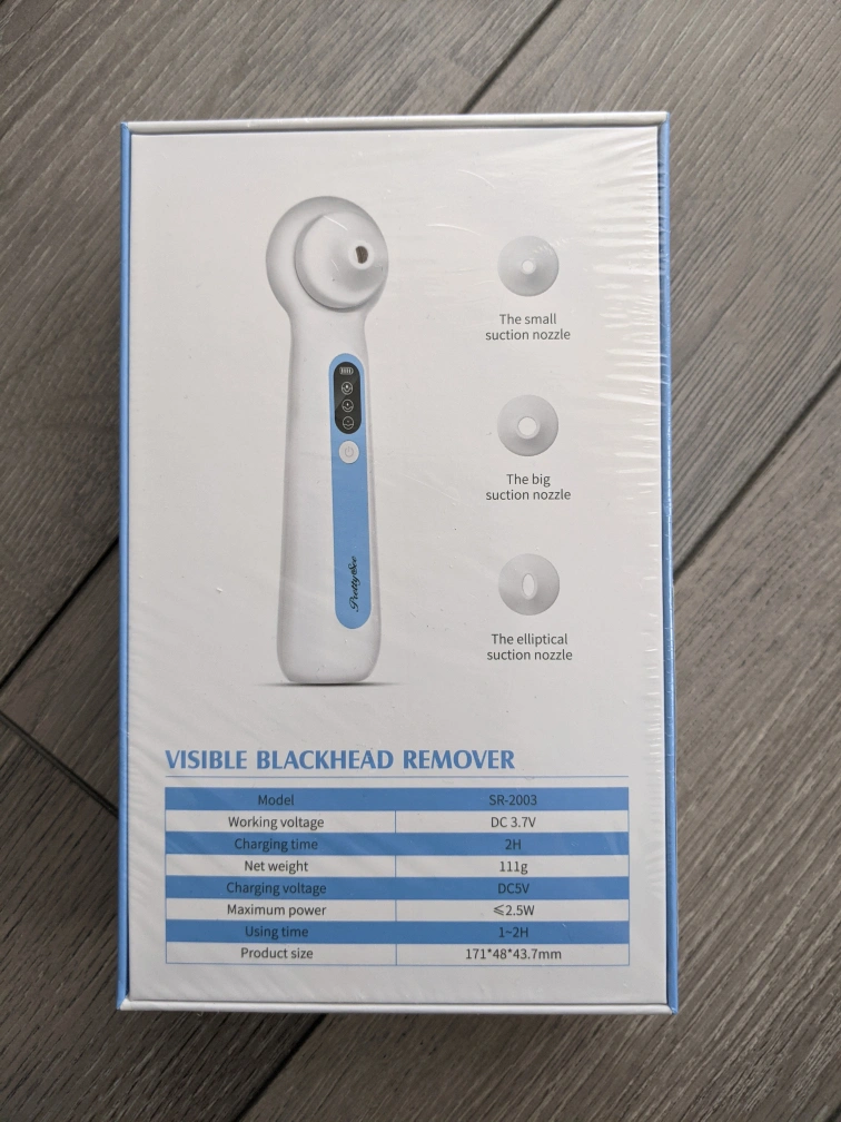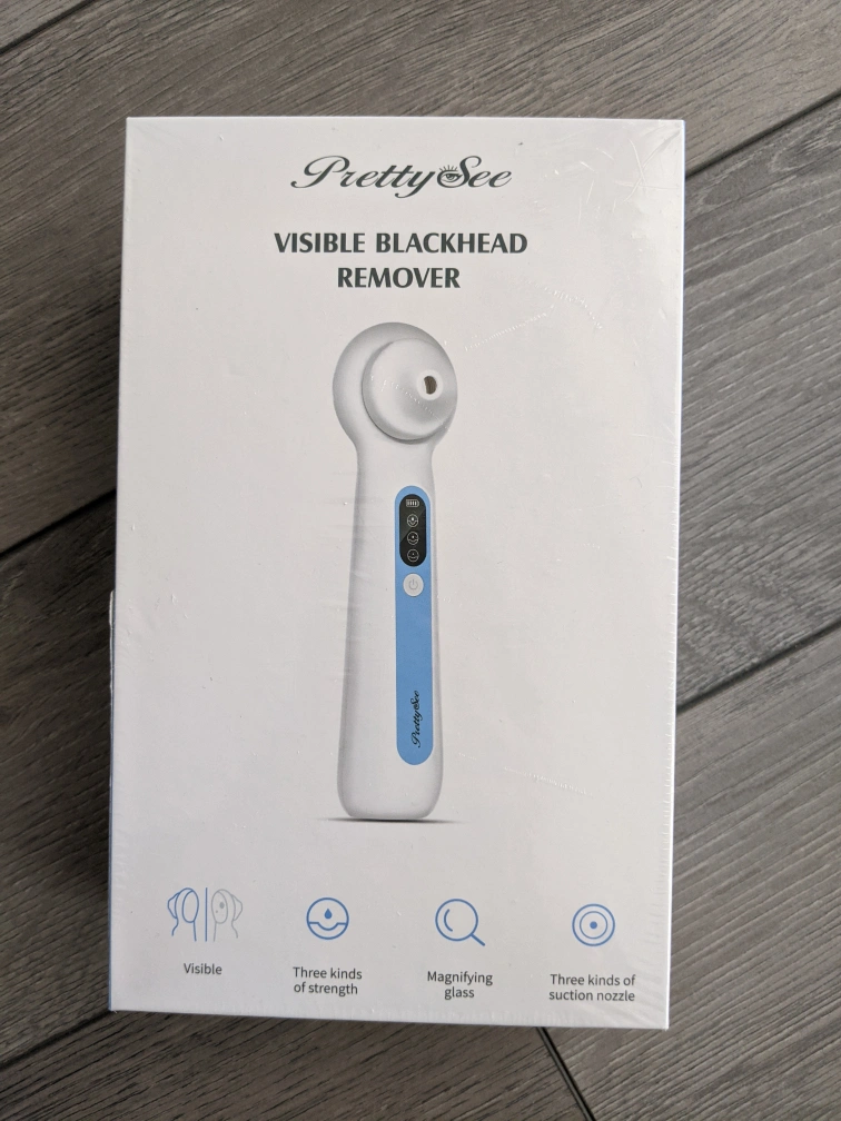 I am selling a brand new PrettySee visible blackhead remover. This device is designed to help you visibly remove blackheads with its built-in camera and suction technology. It comes with multiple suction heads and adjustable strength levels for a customized skincare experience.
