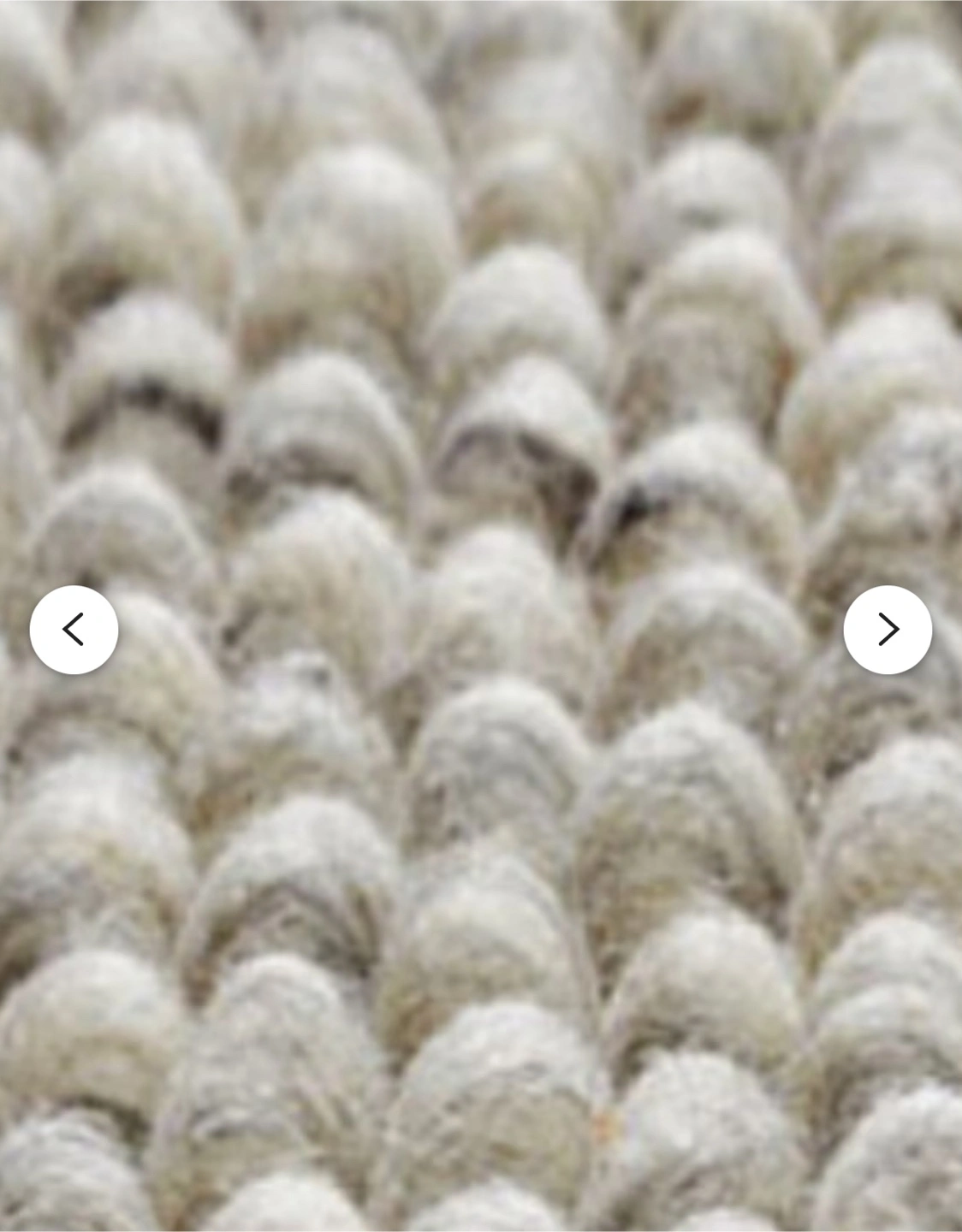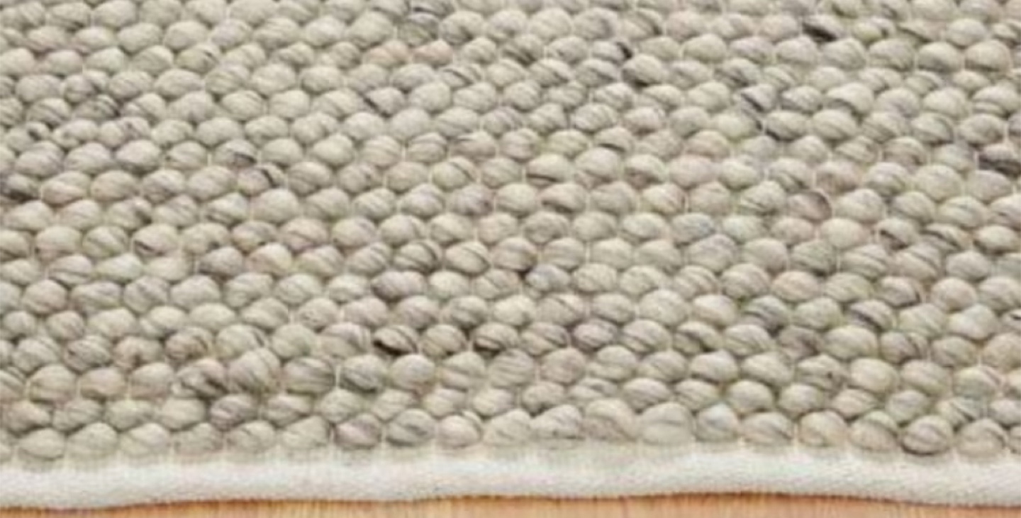 A wonderful, warm rug made from hand tufted, felted yarn loops of 100% wool. It is a fun piece that is extremely soft underfoot and a striking addition to any room. The loops are in soft complimentary tones of pale greys and cream, and the overall effect is a calm but unique rug.