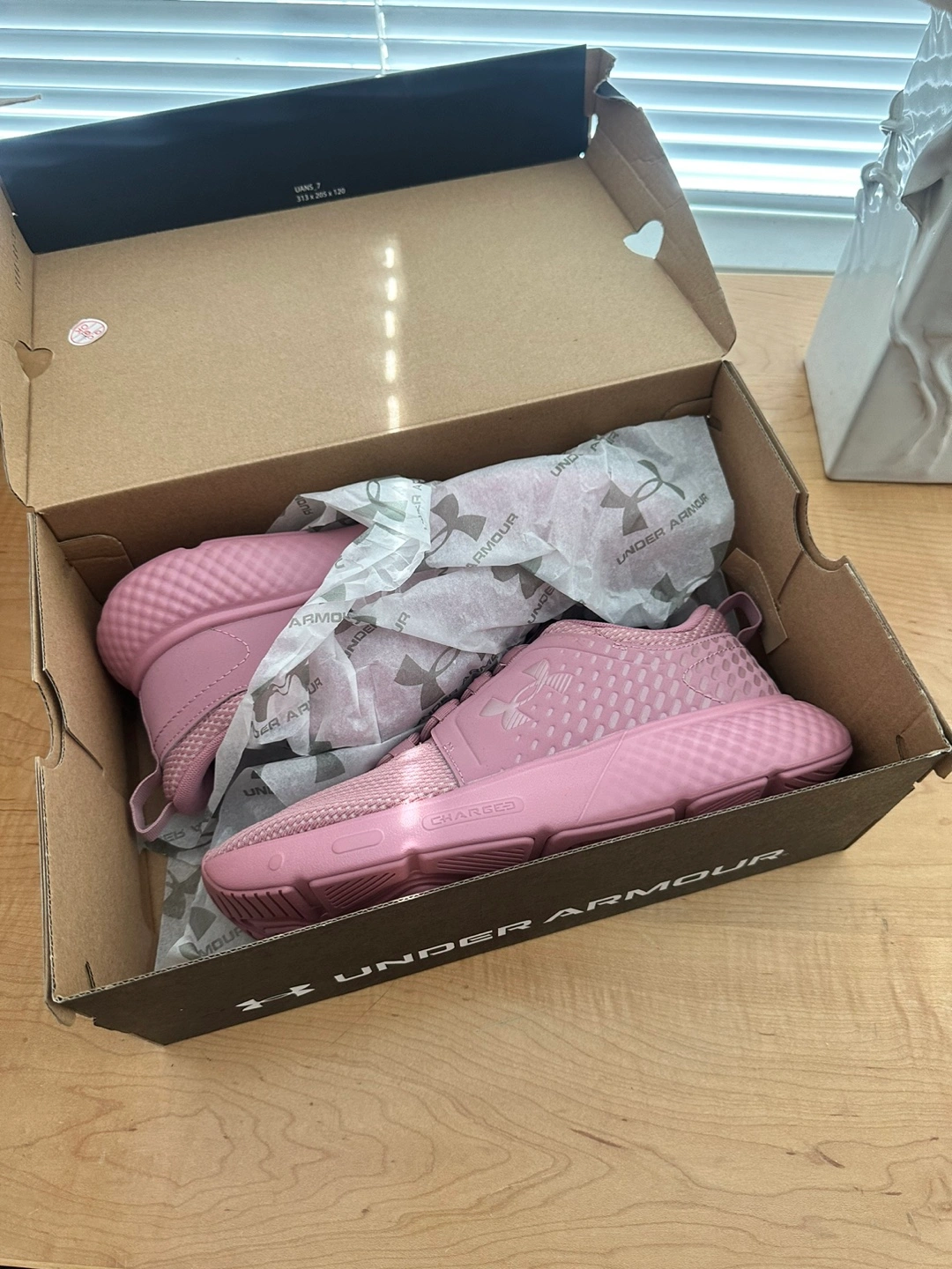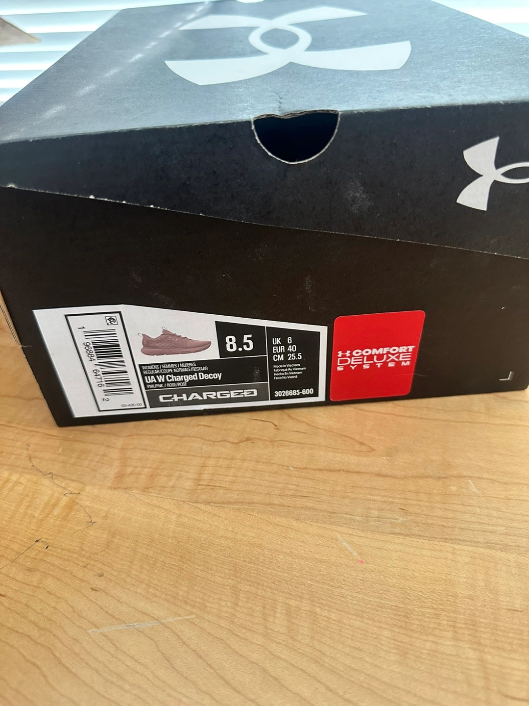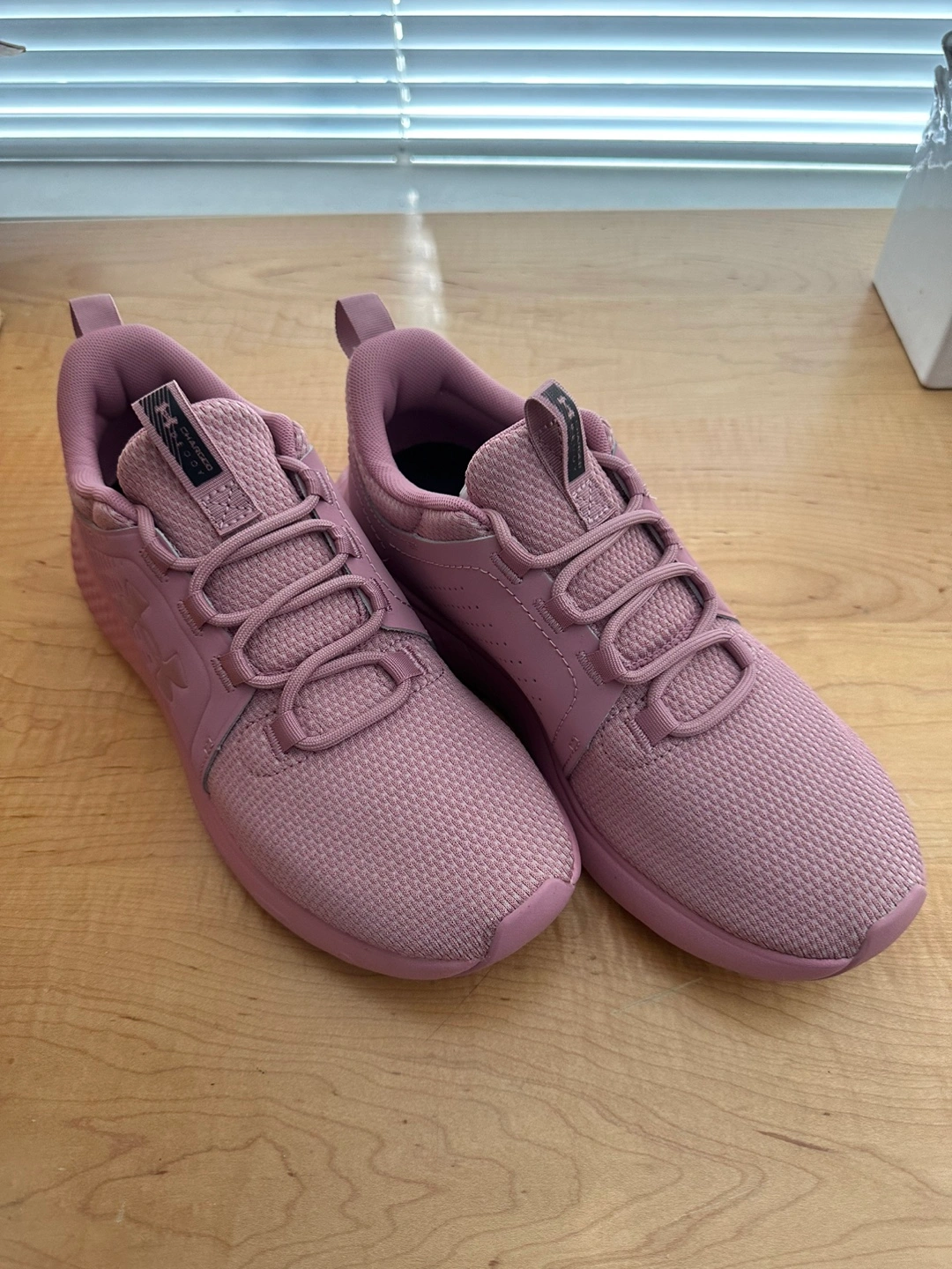 Selling a pair of Under Armour Charged Decoy women's running shoes in size 8.5. They are brand new and come with the original box. Perfect for running or everyday wear!