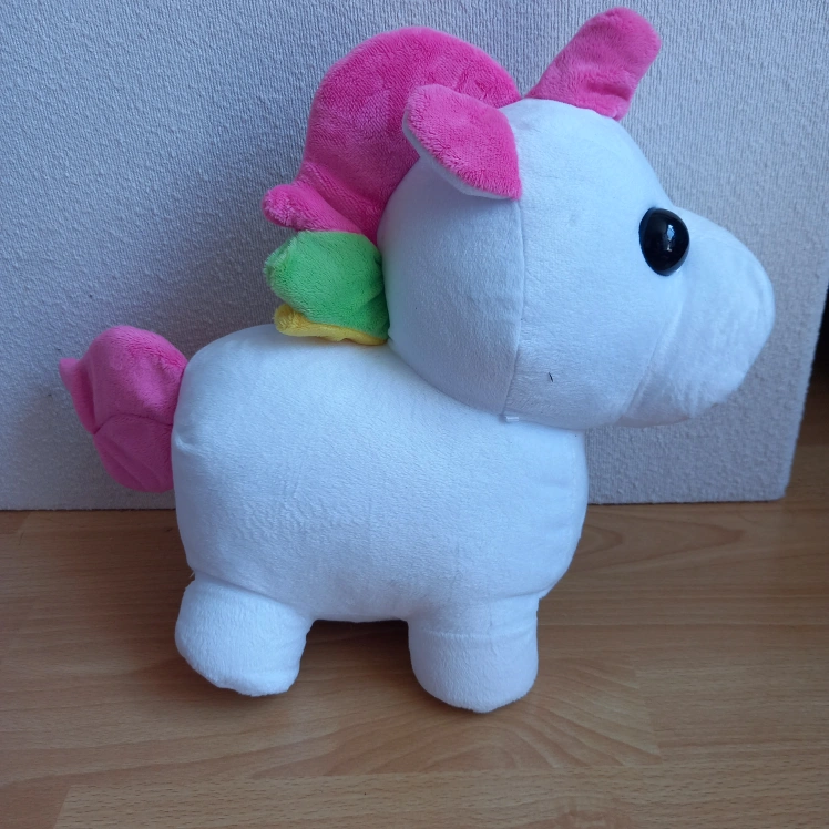 A cute white, pink, green and yellow adop me unicorn that light-up. A cute and fun unicorn to play with.
