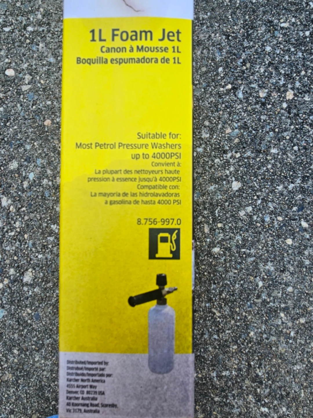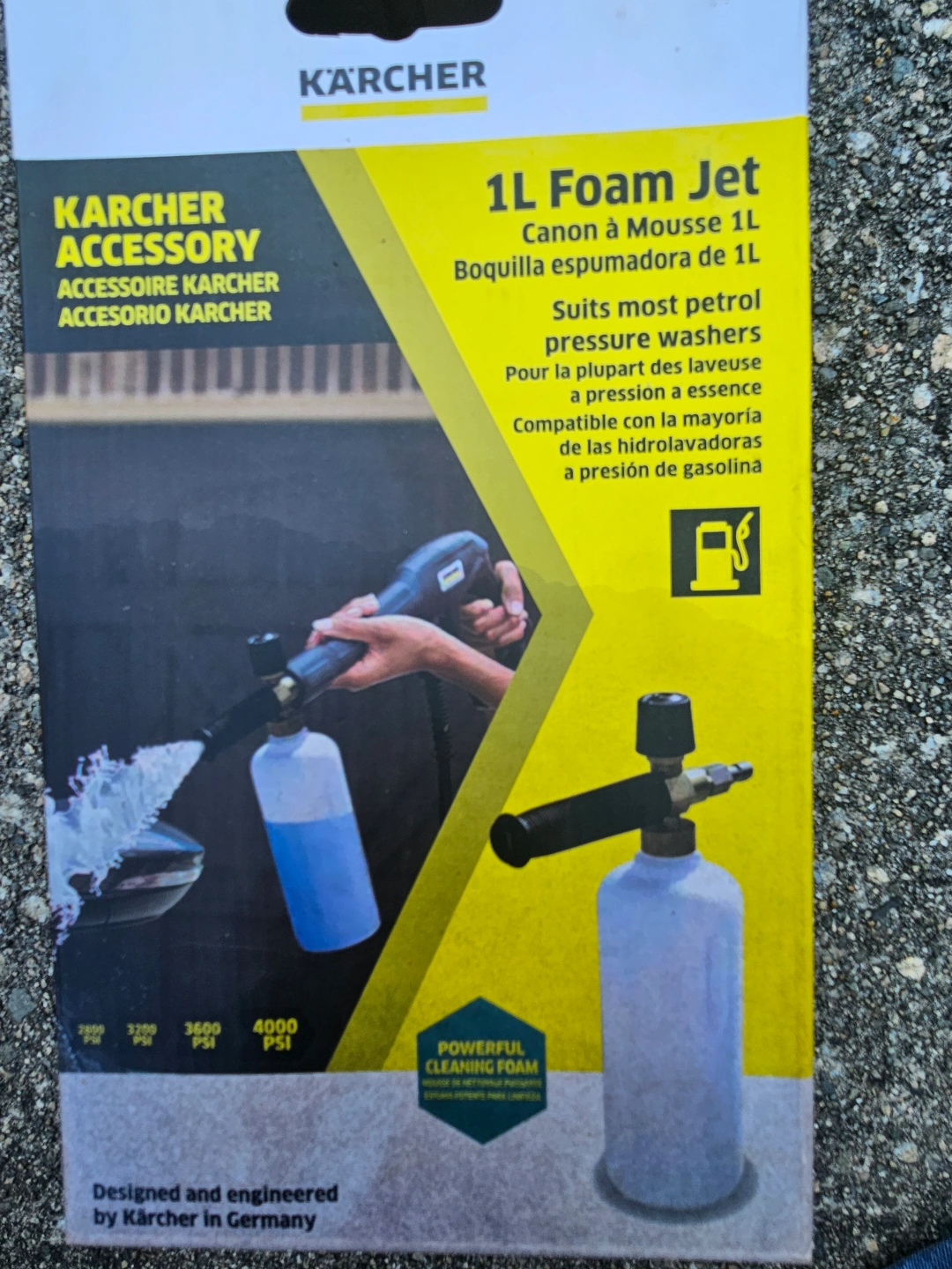 If you want the thick, luxurious soap found at professional car washes, look no further than Kärcher's Foaming Soap Applicator. Simply add detergent concentrate to the canister and top with water. This accessory turns your pressure washer into a personal car wash! Connects directly to the spray gun on select Kärcher electric (K 1700 - K 2000) and gas (up to 4000 psi) pressure washers. Compatible with most brands of Quick Connect-equipped pressure washers rated to 4000 ps
