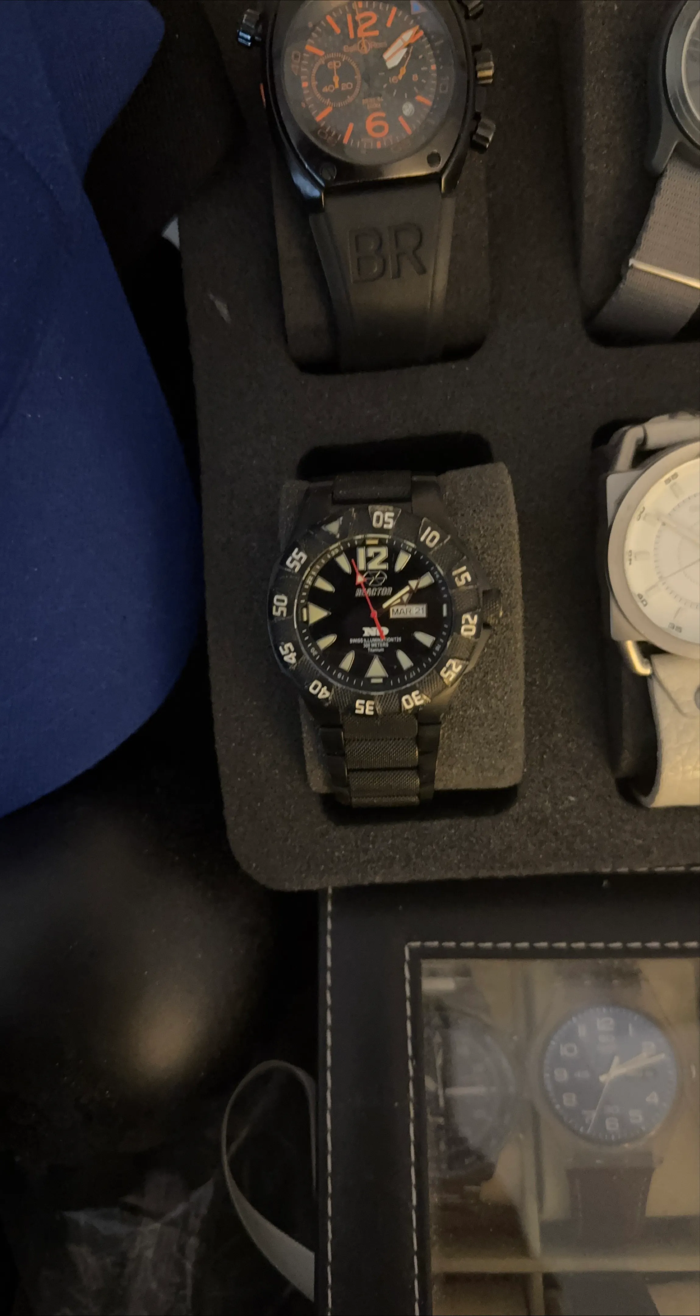 Selling a Reactor watch in black. It's in great condition and ready for a new wrist! The watch features a black band and a black face with clear markings. The date is visible on the watch face