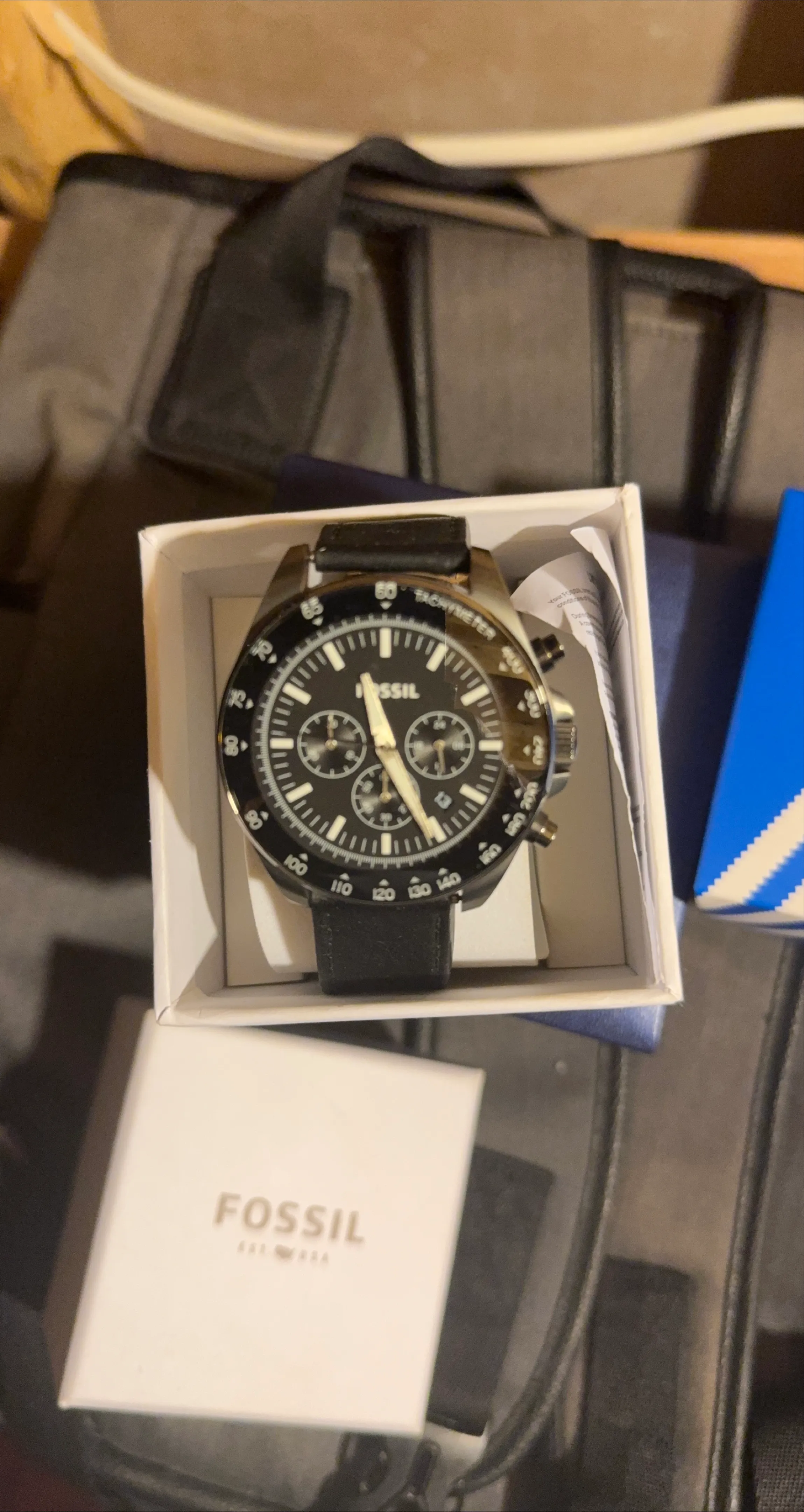 Selling a Fossil watch that's in great condition! It comes with its original box. The watch has a tachymeter and a sleek design. Feel free to message if you're interested!