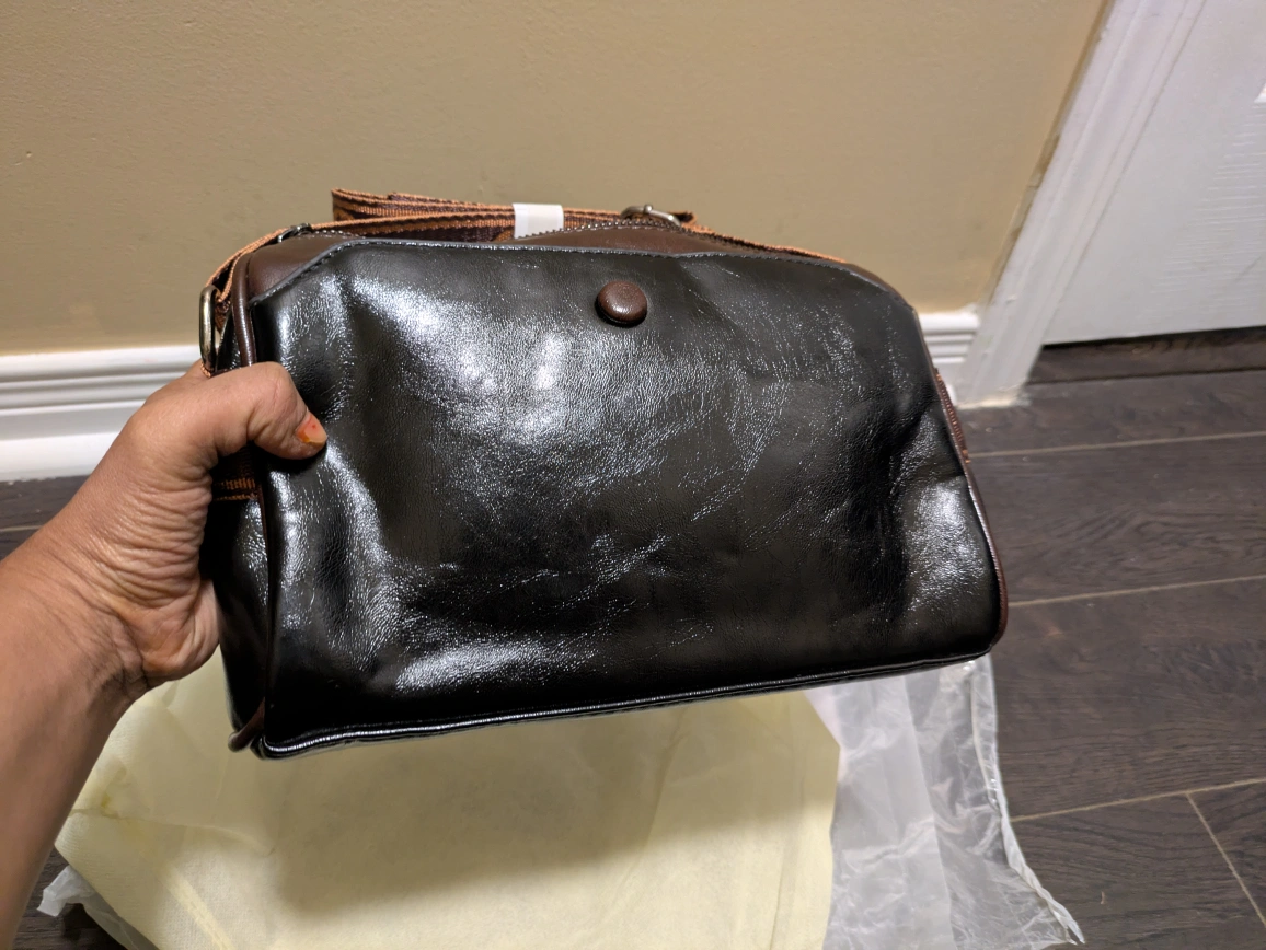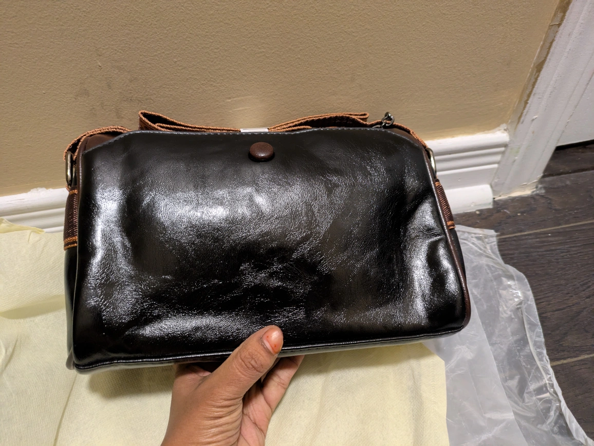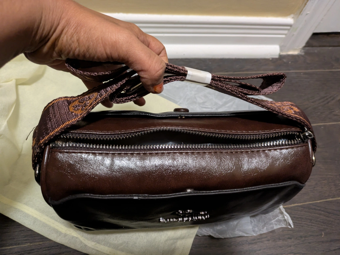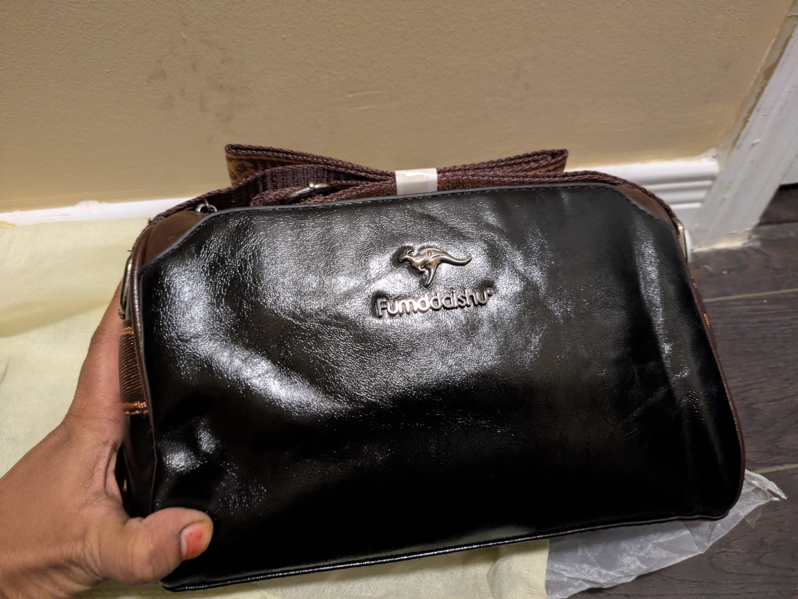 27Here's a stylish Fumddaishu shoulder bag in black! It's made of leather and has a unique kangaroo logo. The bag measures approximately 22cm in length, 13cm in height, and 9cm in width. The strap has a lovely floral pattern