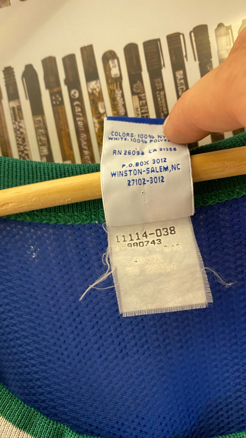 100% Authentic. 1997 Release. Made in the USA. Men's XL. Deadstock Condition. Some notes: One of the holiest of champion grails - with the exception of handful of notables .. like a Nets 1992-93 Drazen Petrovic ... or maybe a 1991 Denver Chris Jackson.. - released nearly four seasons before his first official appearance on an NBA court in 2001. Rumour has it this was a pre-emptive move to capitalize on the likely sales spike in anticipation of the curiosity of the first Chinese player to play stateside. Tags: supreme Nike Jordan bape adidas hardwood classics majestic luka dirk doncic nowitzki smith eric montross cedrick ceballos cherokee parks michael finley jason kidd courtney alexander eduardo najera howard eisley sam cassell derek harper steve nash wang zhizhi rod strickland greg buckner jim jackson sean rooks a.c. green popeye jones dennis rodman jamal mashburn juwan howard danny manning tim hardaway