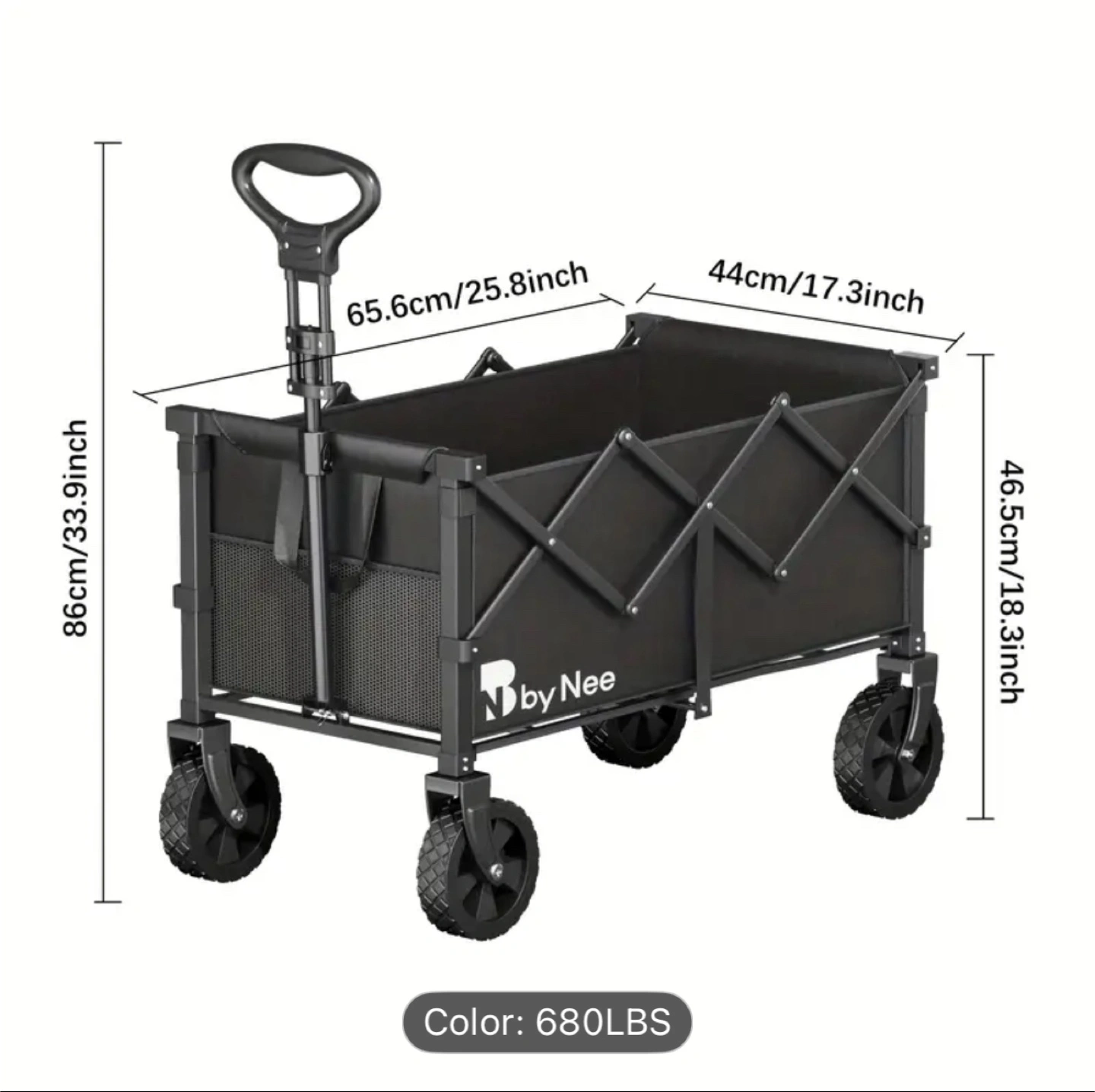 I'm selling a byNee portable folding wagon in black! It's great for compact storage and can hold up to 680lbs.