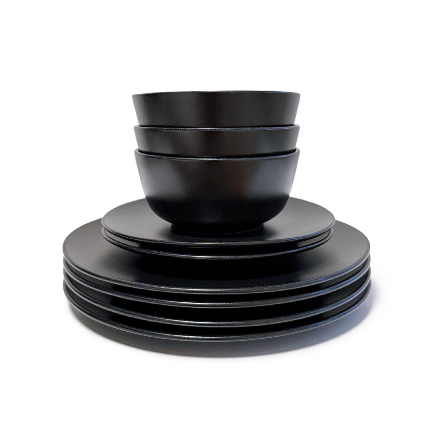 A set of 9 pieces: includes 3 bowls, 2 small and 4 large plates.
