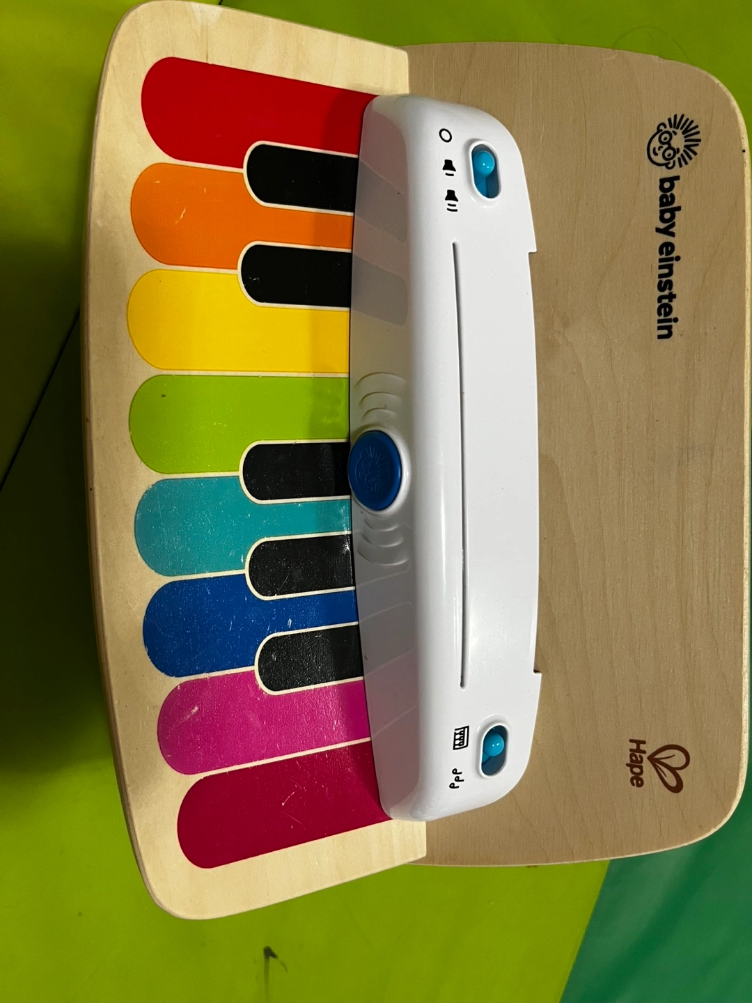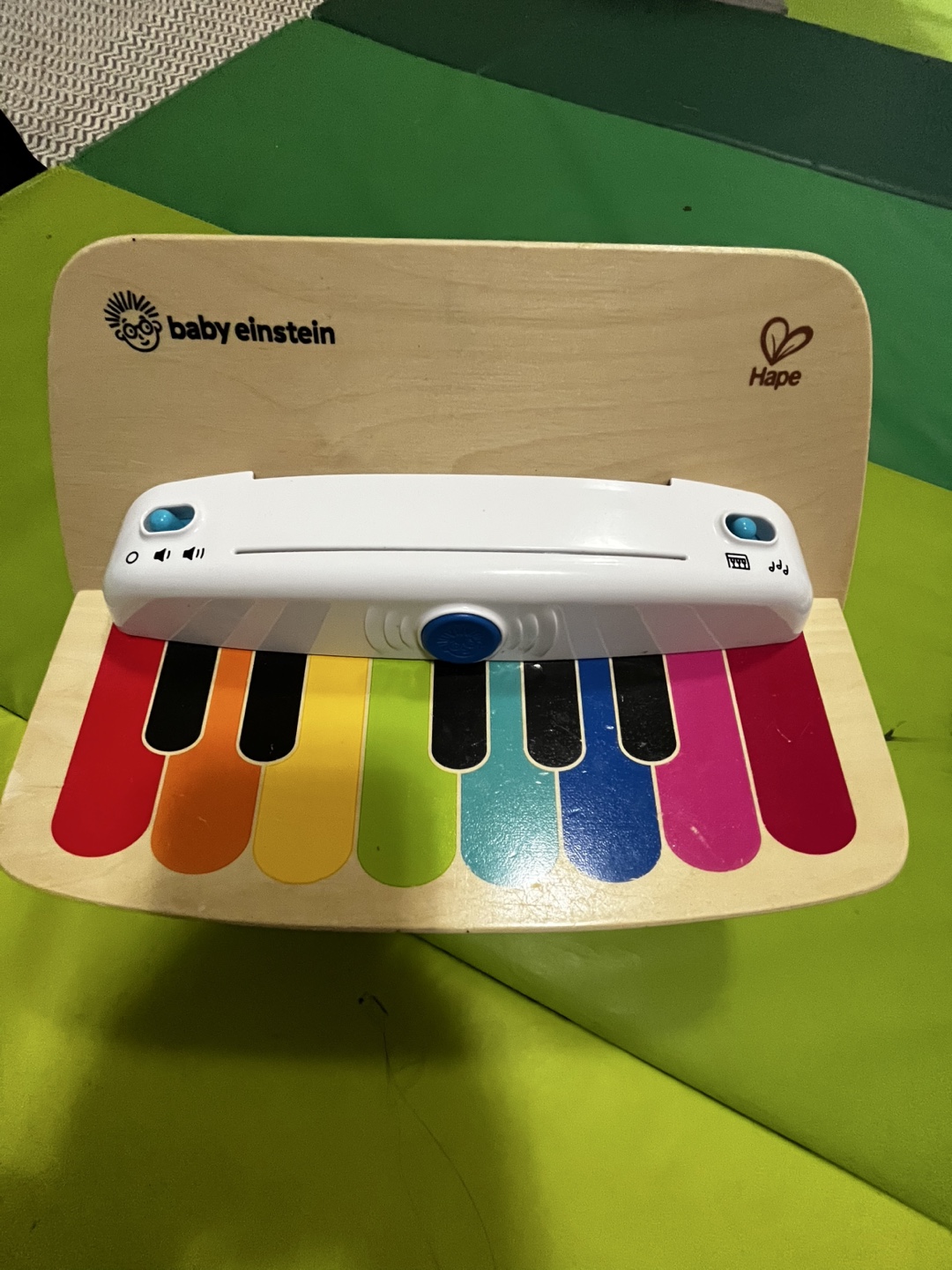 This is a Baby Einstein Hape Magic Touch Piano! It's a fun, interactive toy that lets your little one explore music and develop their fine motor skills. The piano features a wooden base and uses touch technology, so there are no buttons to press. Just tap to play!