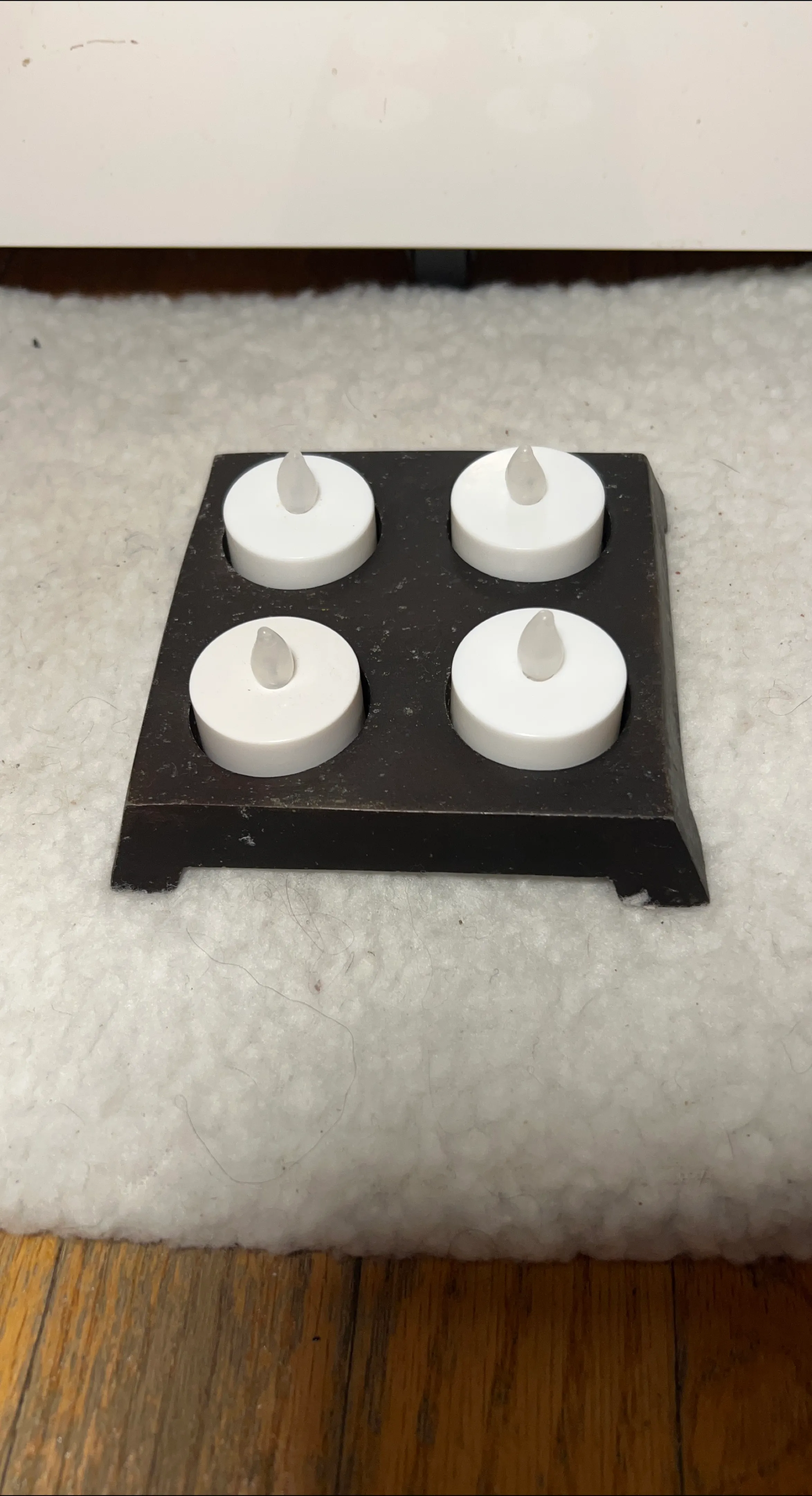 Selling a set of four LED tea lights with a Bronze Dark Brown Holder. They will create a cozy glow to your space.