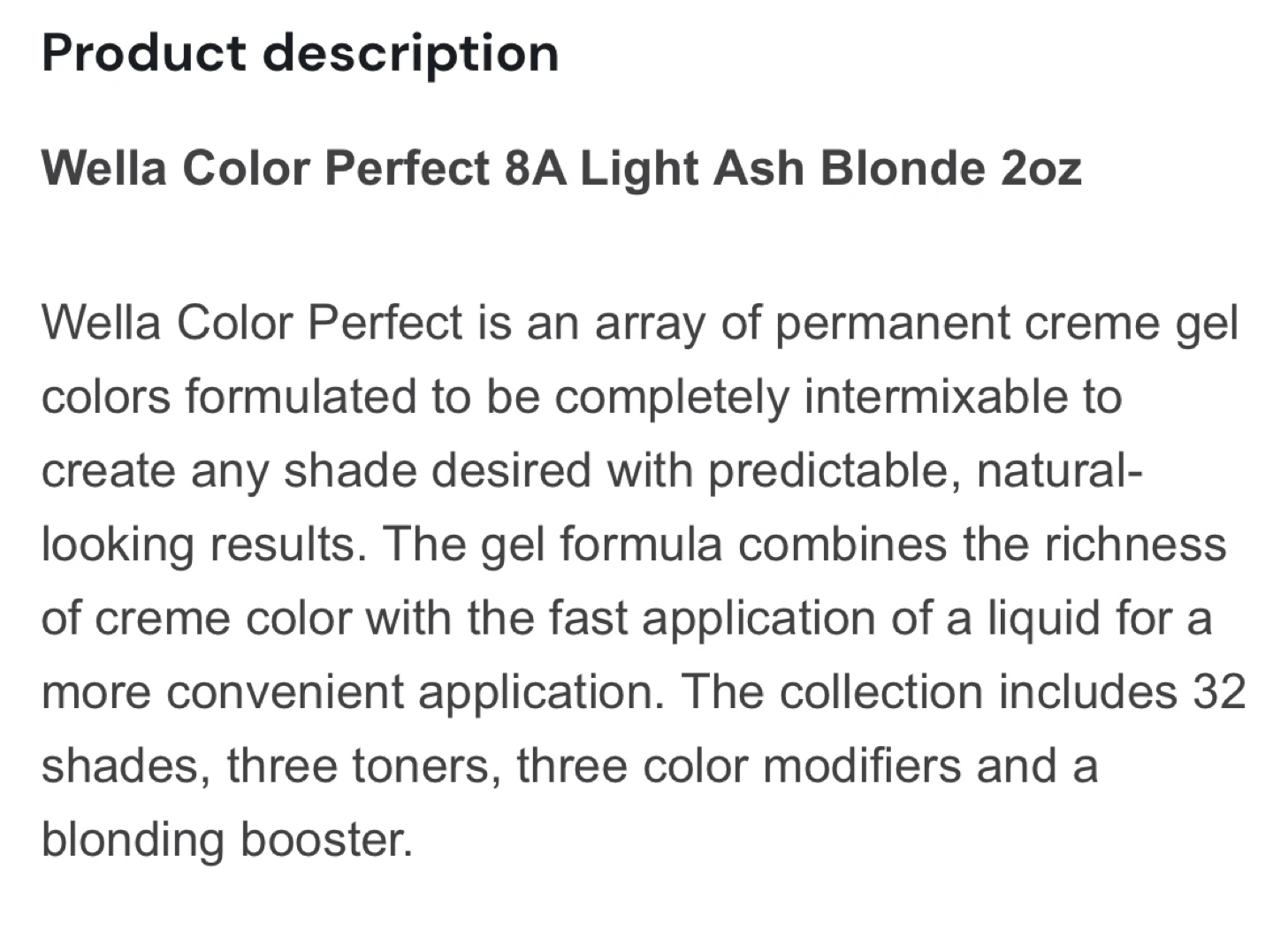 Wella Color Perfect 8A Light Ash Blonde 2oz