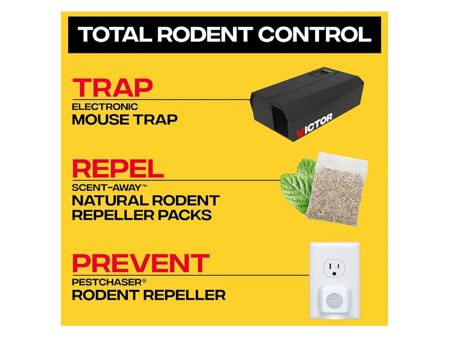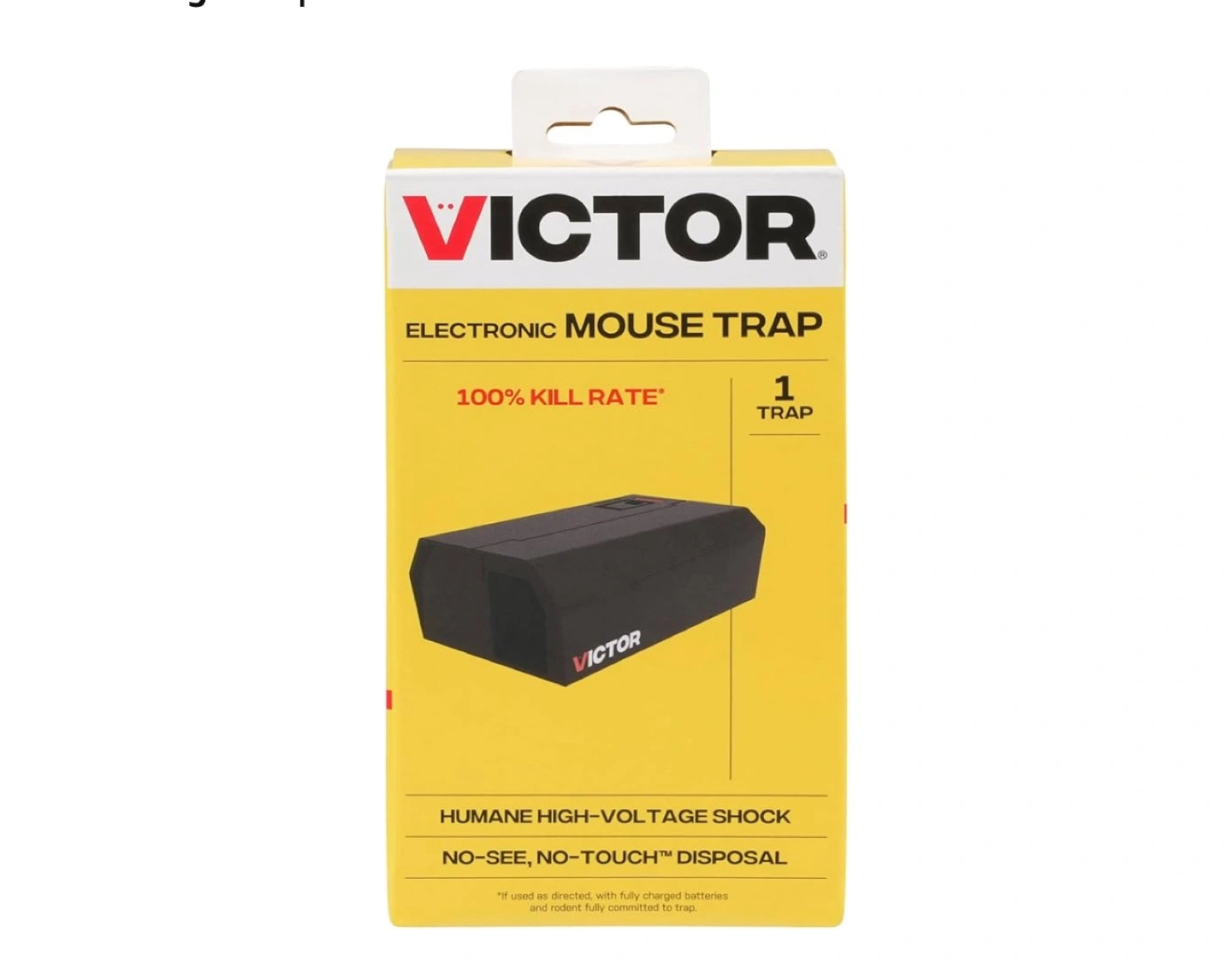 Selling a Victor Electronic Mouse Trap! It features smart detection with a sensor that triggers a shock when a mouse is in place. It has a 100% kill rate and a no-see, no-touch disposal. Dimensions are 4.56" x 4" x 7.13"