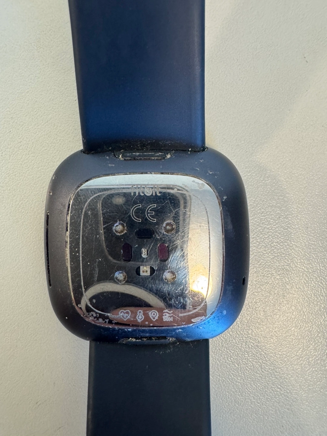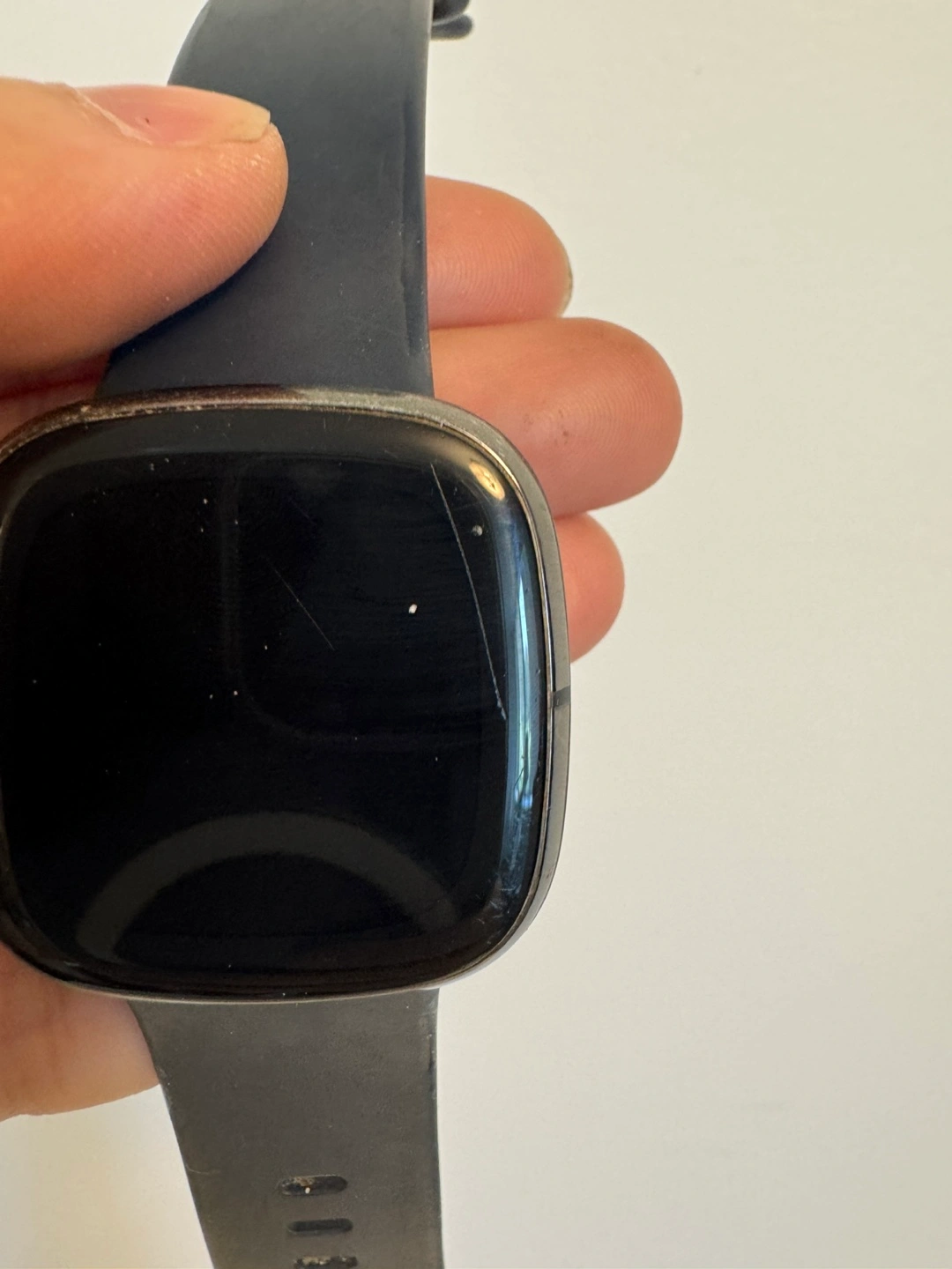 Selling a Fitbit Versa smartwatch. It has some scratches on the screen and body, as shown in the pictures.