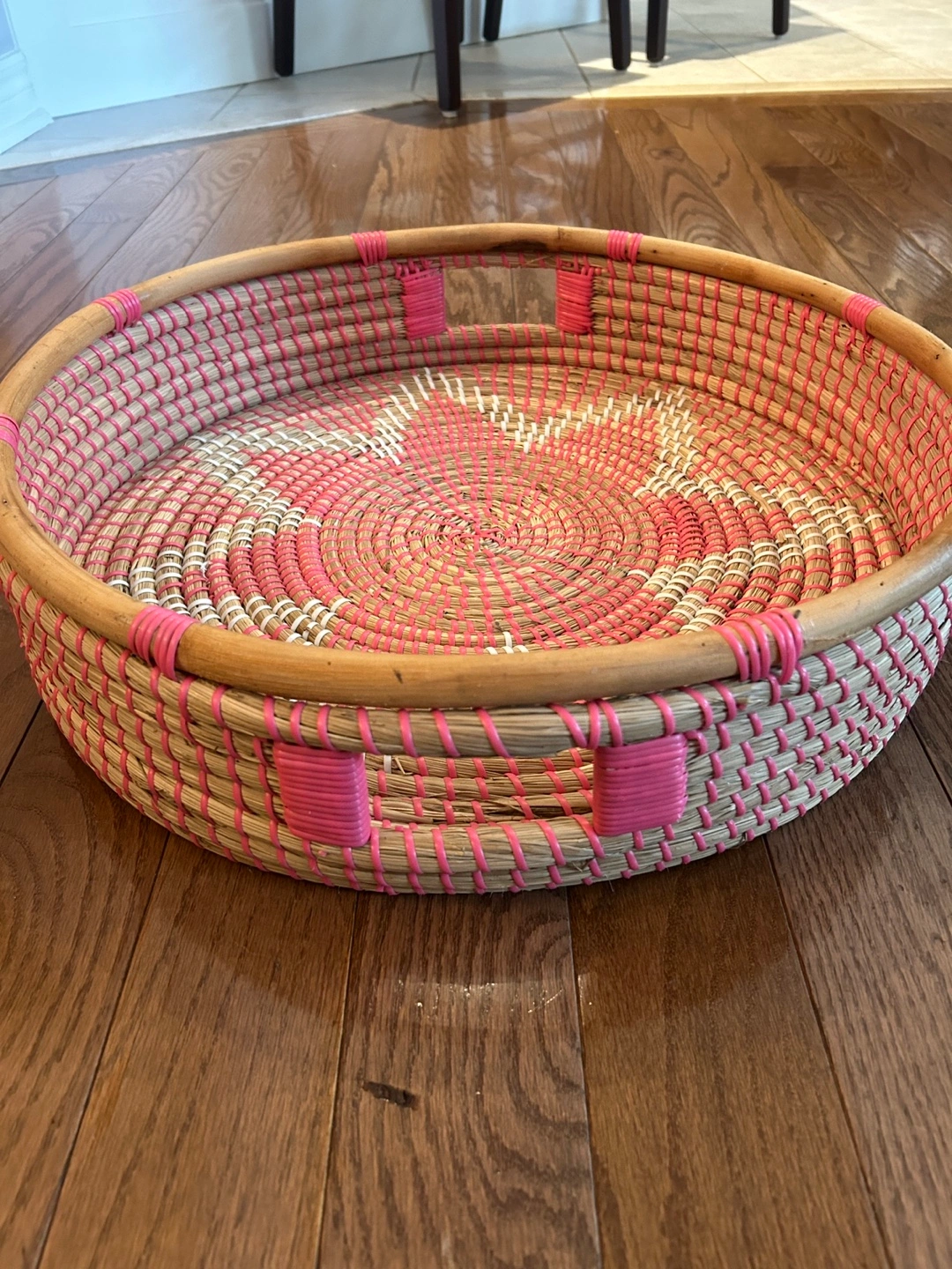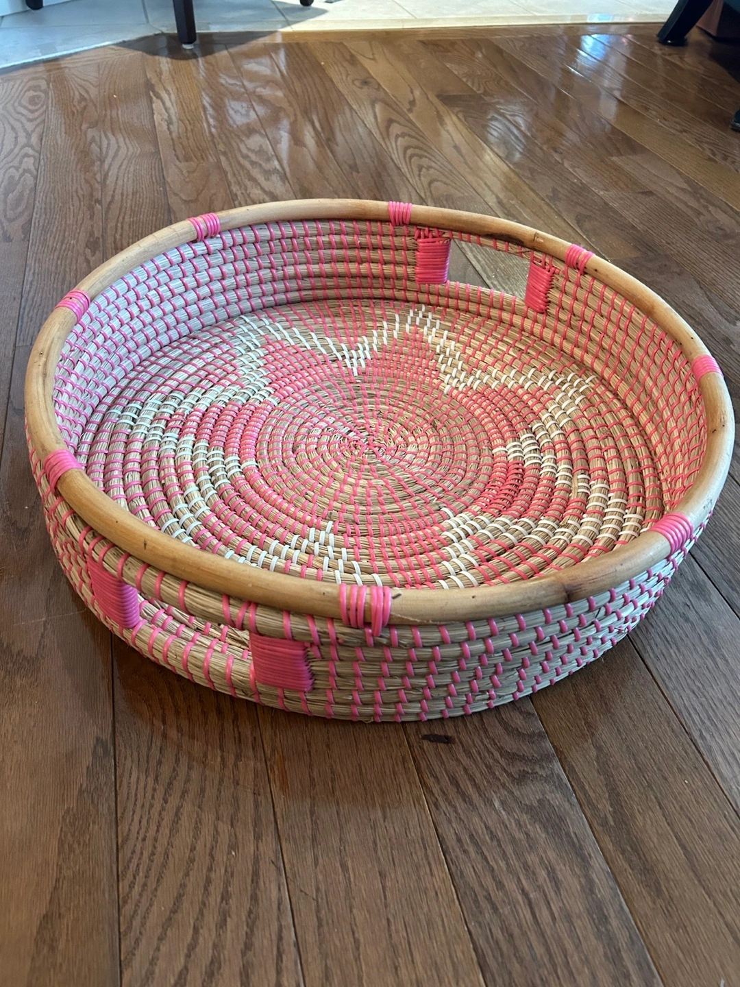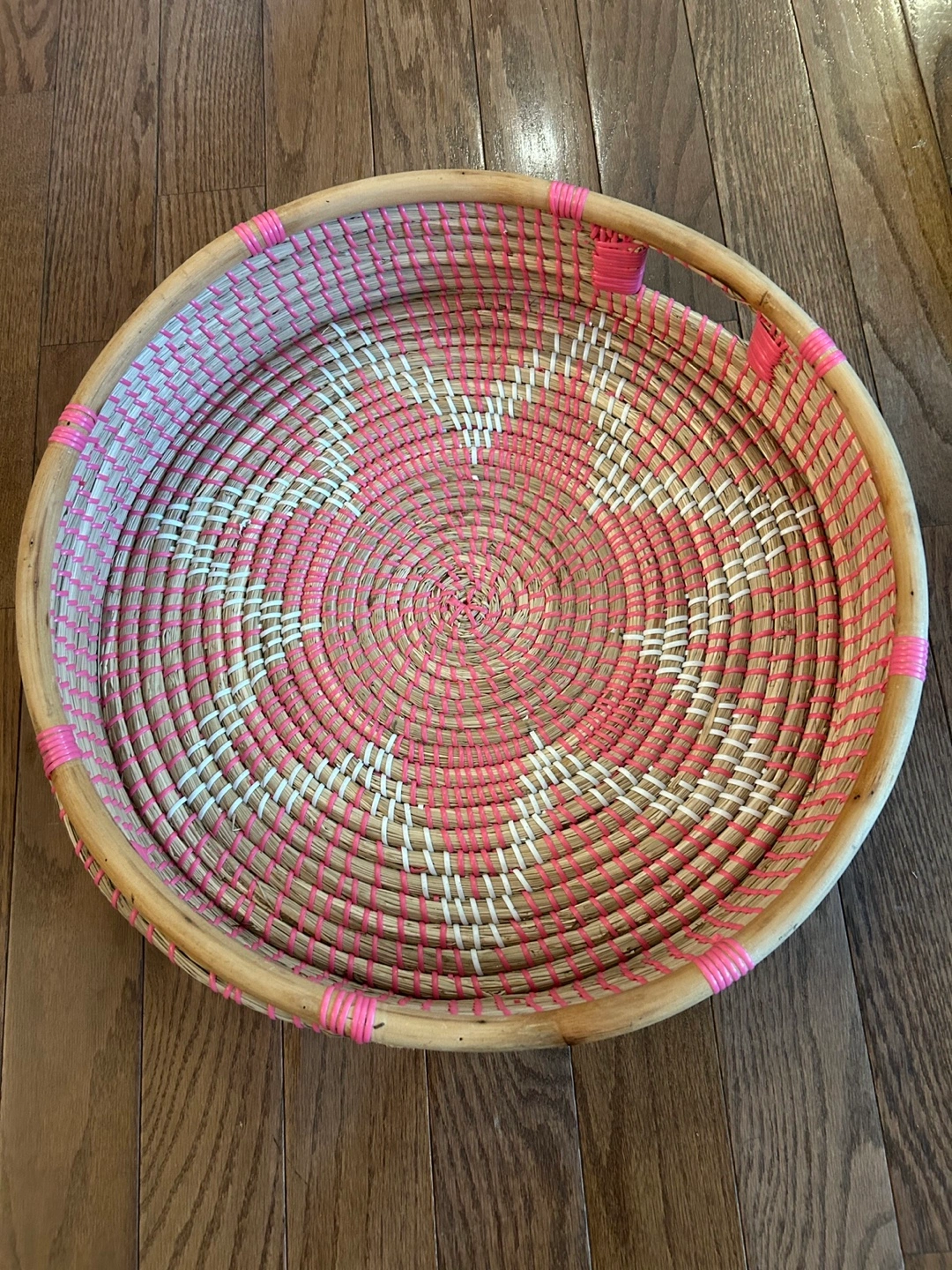 Large Pink Woven Boho Platter / Tray - Table Centrepiece