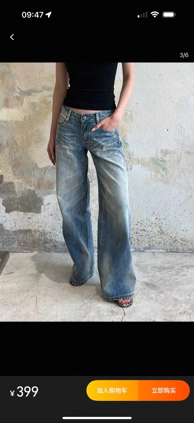 Selling a pair of distressed wide leg jeans. They have a unique design and a comfortable fit. Perfect for a casual, stylish look! Washed once and tried on at home. But does not fit my waistline. Buy three items from my listings and get one under 10 for free! Multiple purchases come with decent discounts!