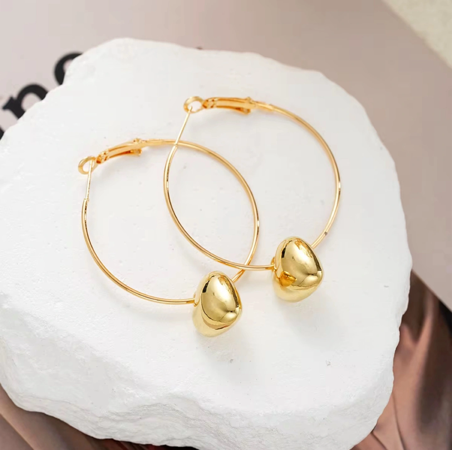 Selling a pair of Gold & Silver hoop earrings! They have a cute heart charm. The hoops are about 5.8cm in diameter and the heart charm is about 4cm. They're made of alloy and weigh 4.7g