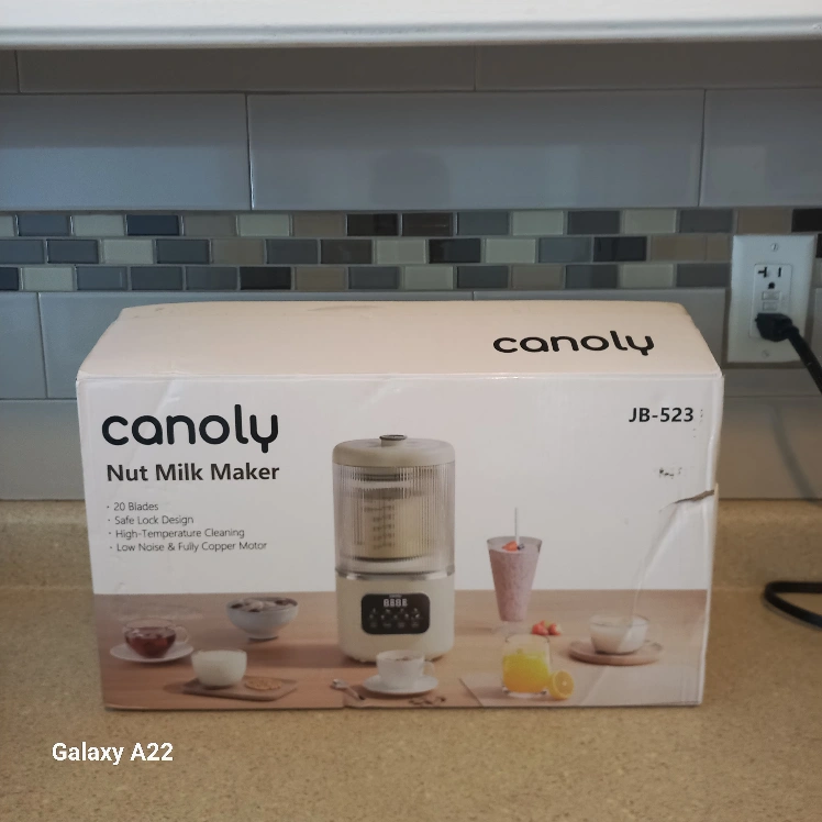 Selling a Canoly Nut Milk Maker, model JB-523. It's in like-new condition and comes with all the original components. This nut milk maker features 20 blades, a safe lock design, high-temperature cleaning, and a low-noise, fully copper motor. Perfect for making fresh and healthy nut milk at home!