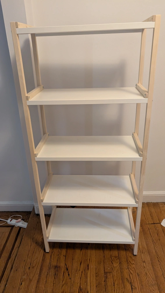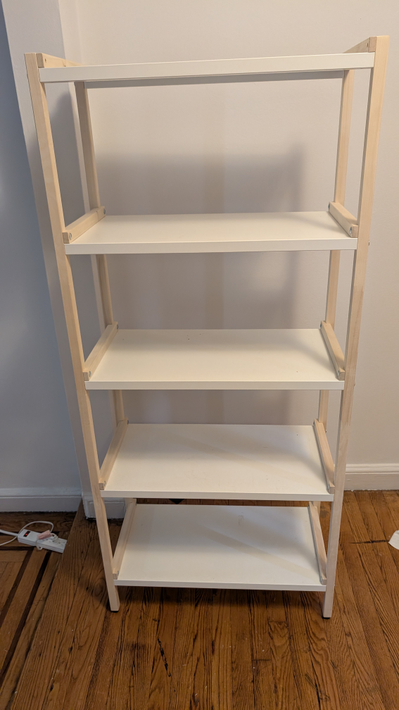 Giving away an EKENABNEN (https://www.ikea.com/us/en/p/ekenabben-open-shelf-unit-aspen-white-80487813/) shelf unit from IKEA. It features a clean white shelving surface with a natural wood frame. Great for adding some extra storage!