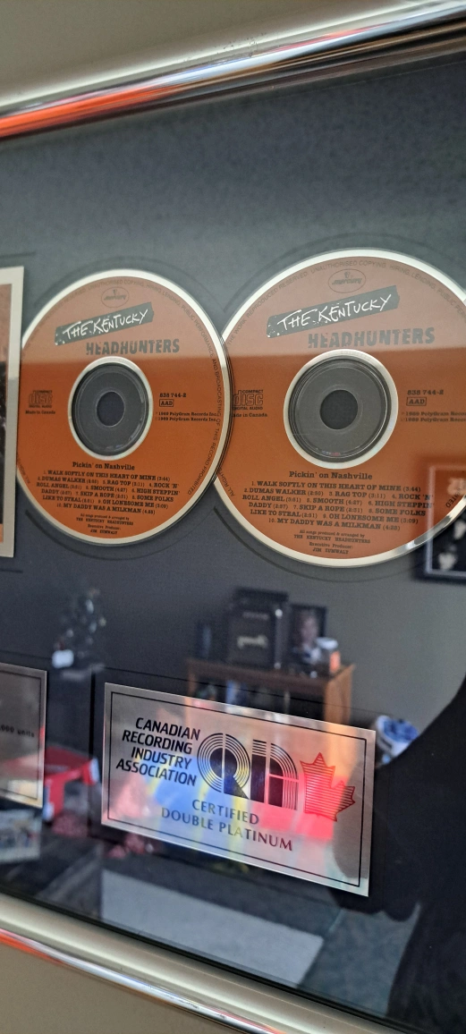 Selling a framed double platinum award for The Kentucky Headhunters album "Pickin' on Nashville".