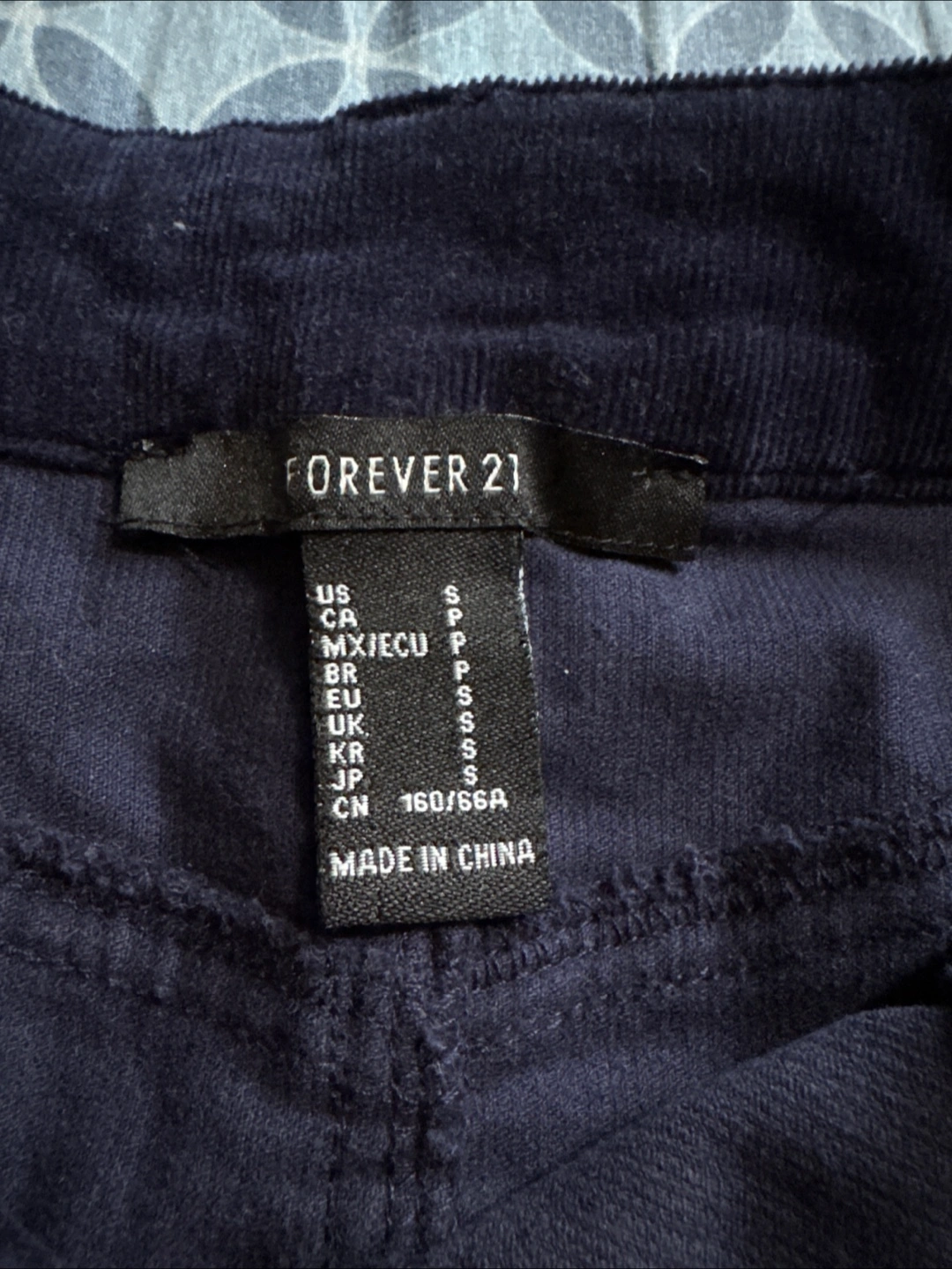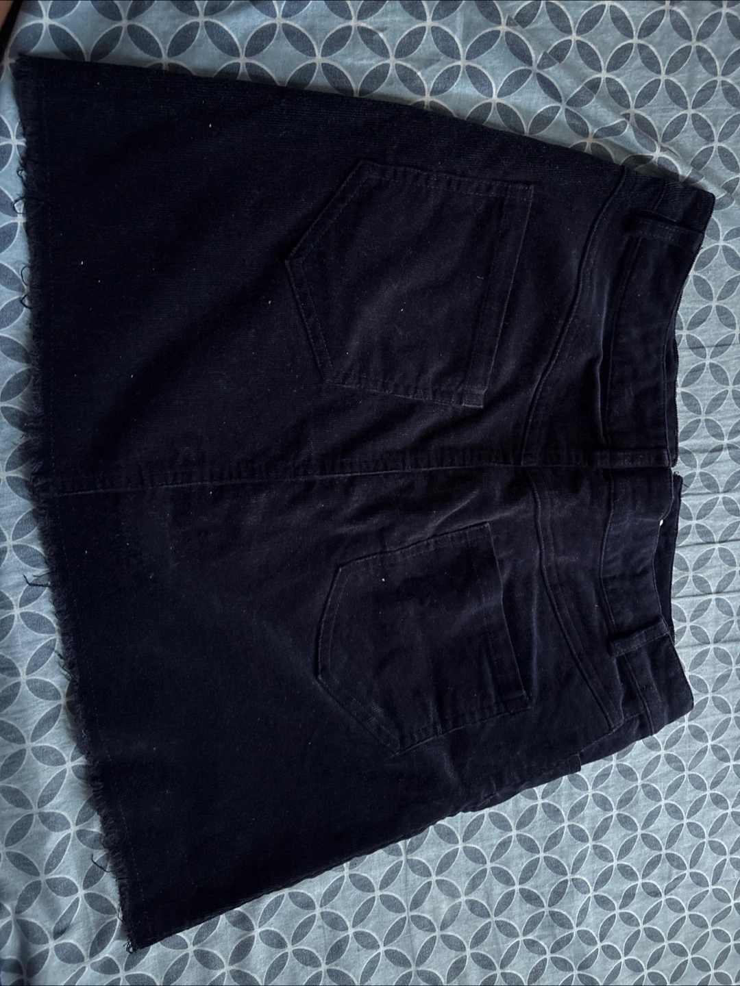 Selling a cute Forever 21 corduroy mini skirt in size small! It's a dark colour and has a bit of a frayed hem for a trendy look. Perfect for pairing with your favourite top and boots!