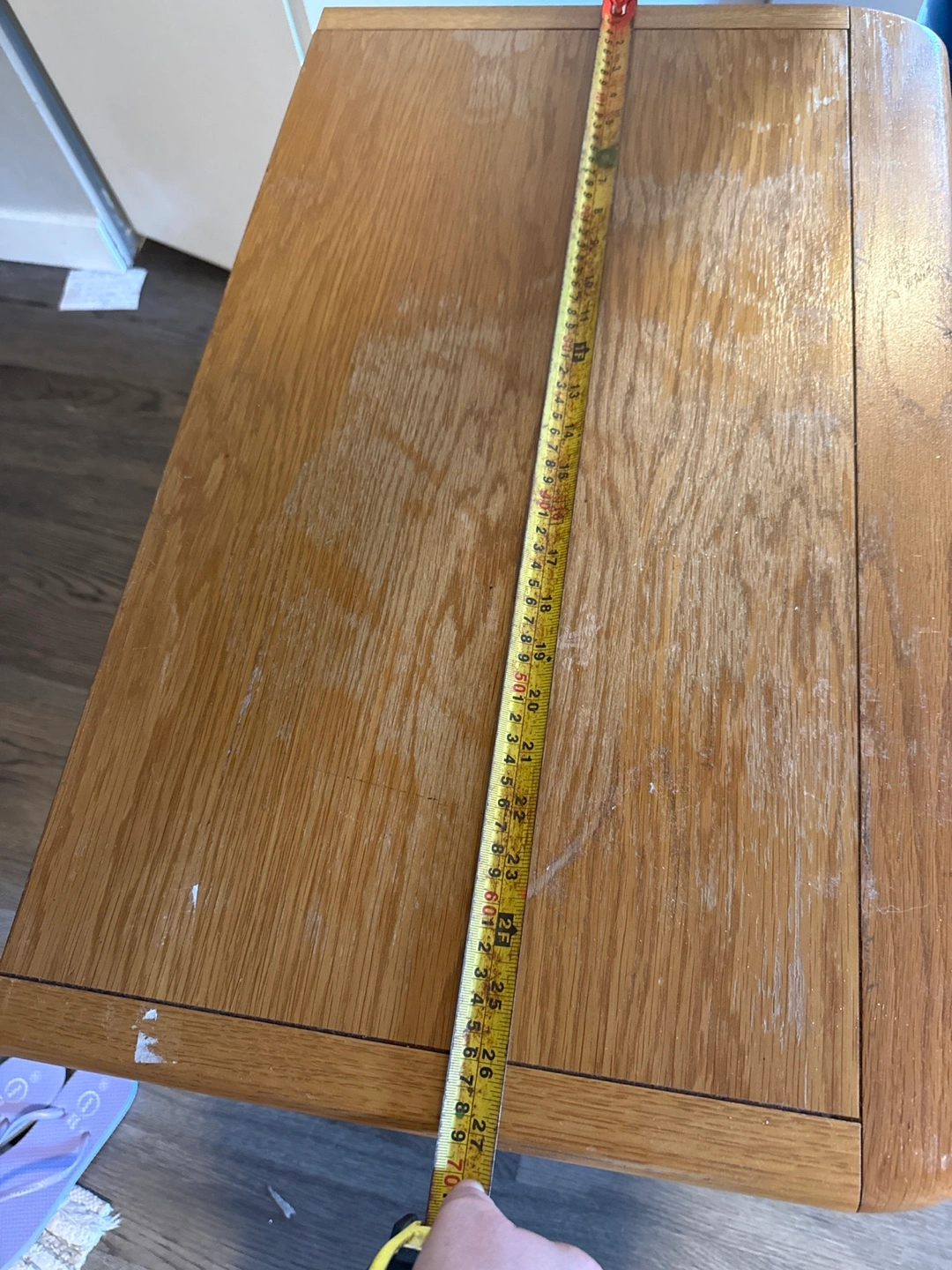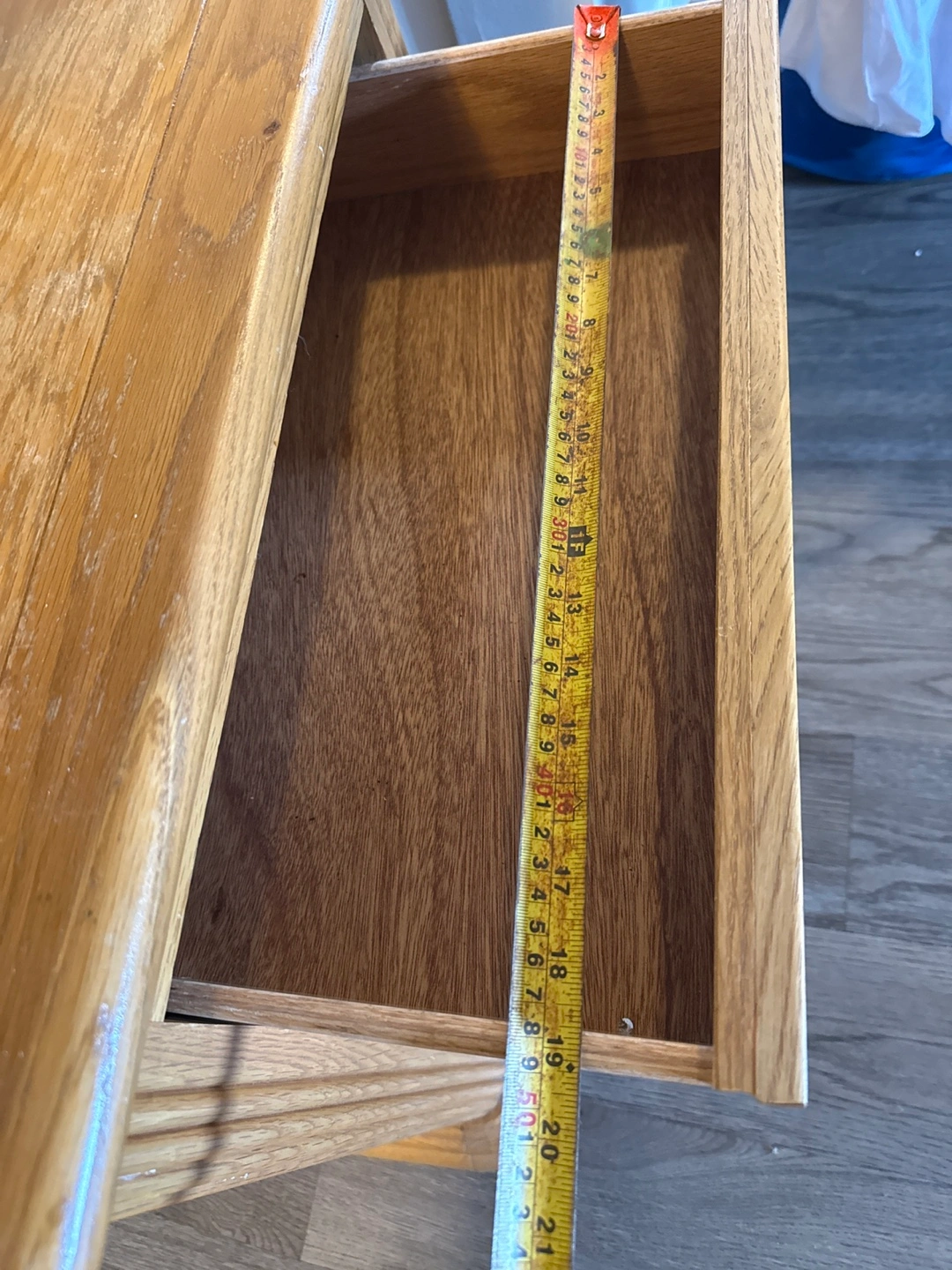 Selling a wooden nightstand with three drawers. It's in good condition and perfect for a bedside table or small storage unit.