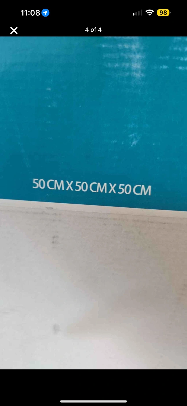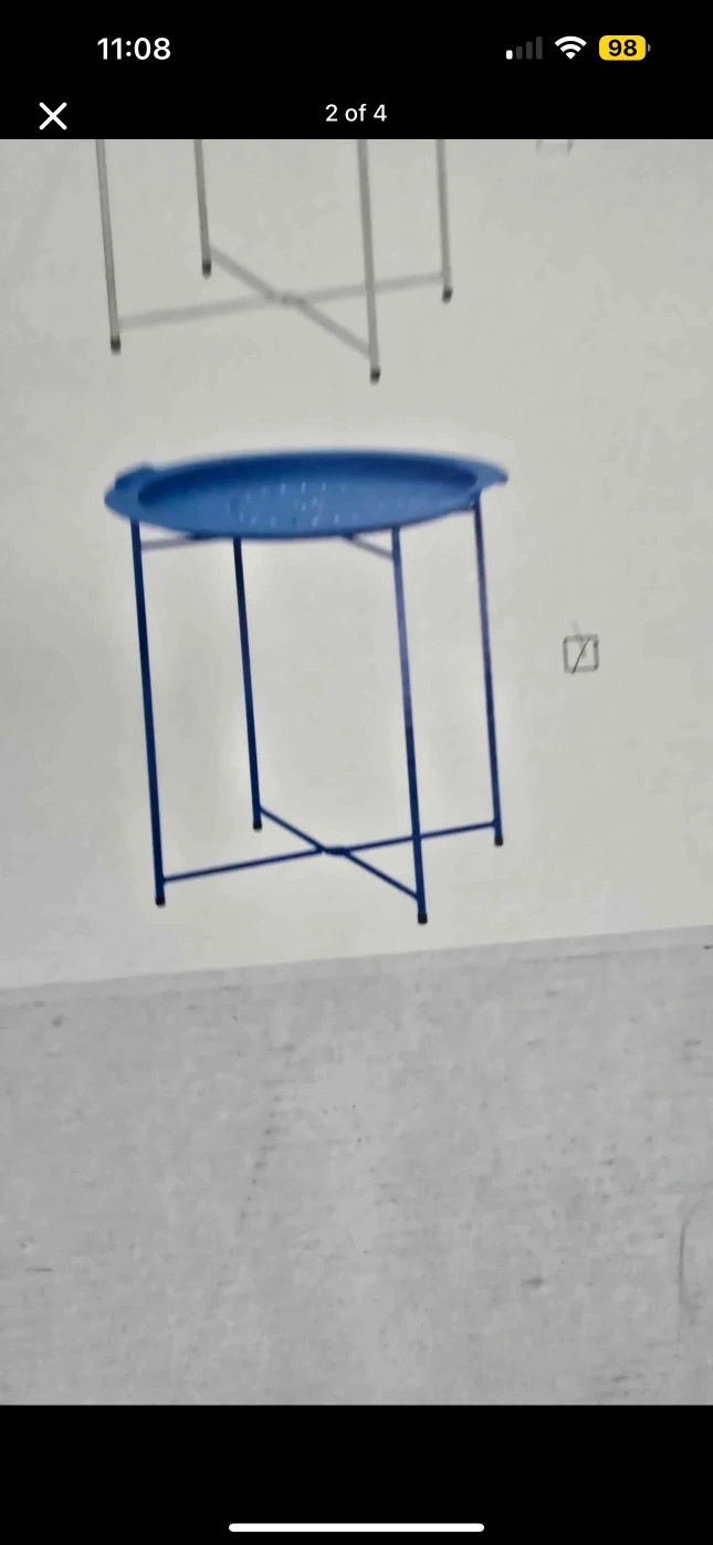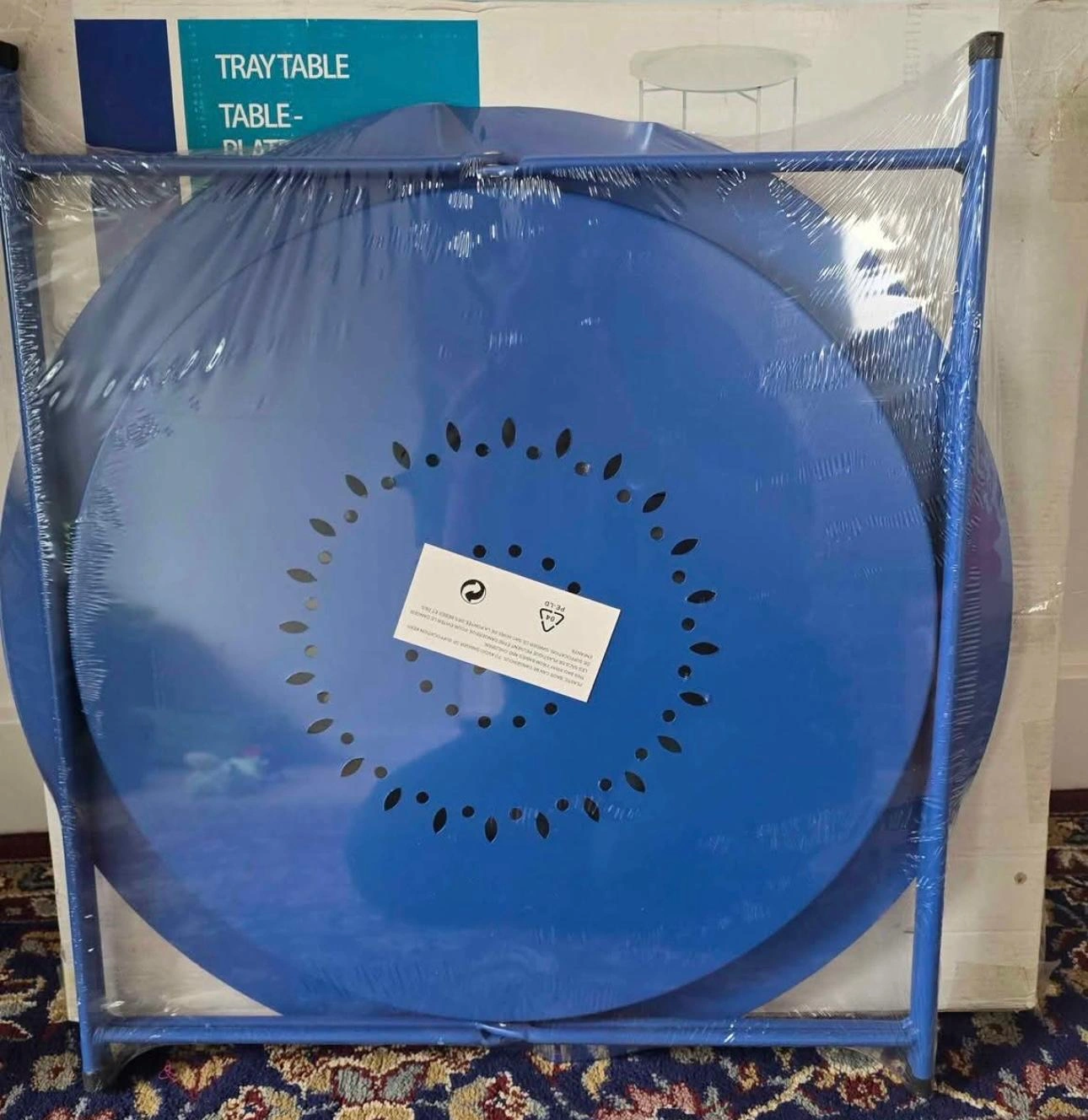 Selling a brand new open box tray table! The table is blue and measures 50cm x 50cm x 50cm. It's a great addition to any room or garden!