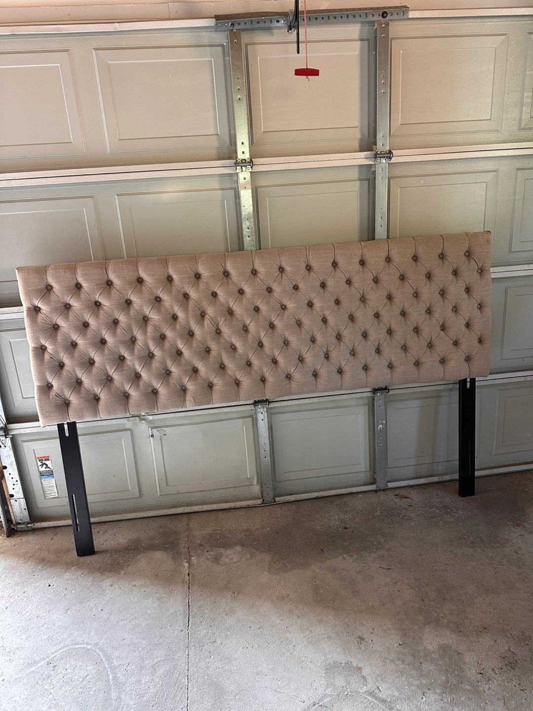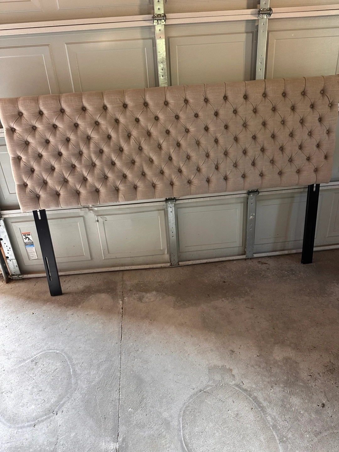 Selling a tufted headboard in a neutral colour. It's in great condition and would look lovely in any bedroom. It features a classic button-tufted design. Perfect for adding a touch of elegance to your space!