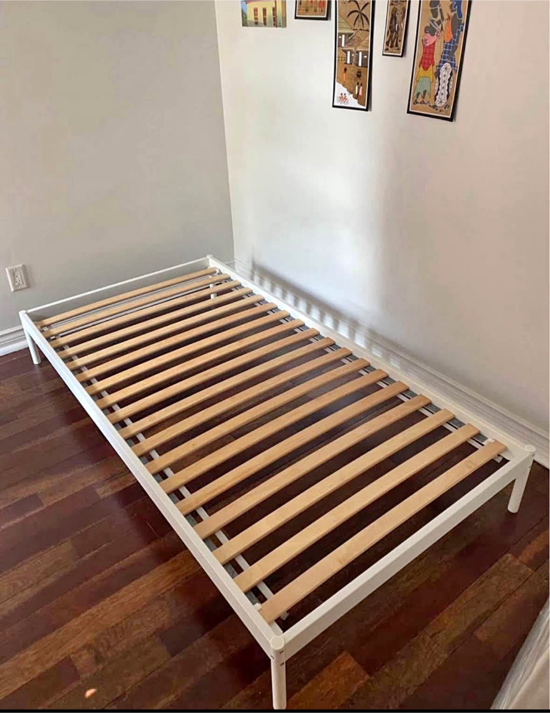 Selling an Ikea bed frame in white. It's a twin size and in great shape. Perfect for a small space or a kid's room! Delivery available for extra
