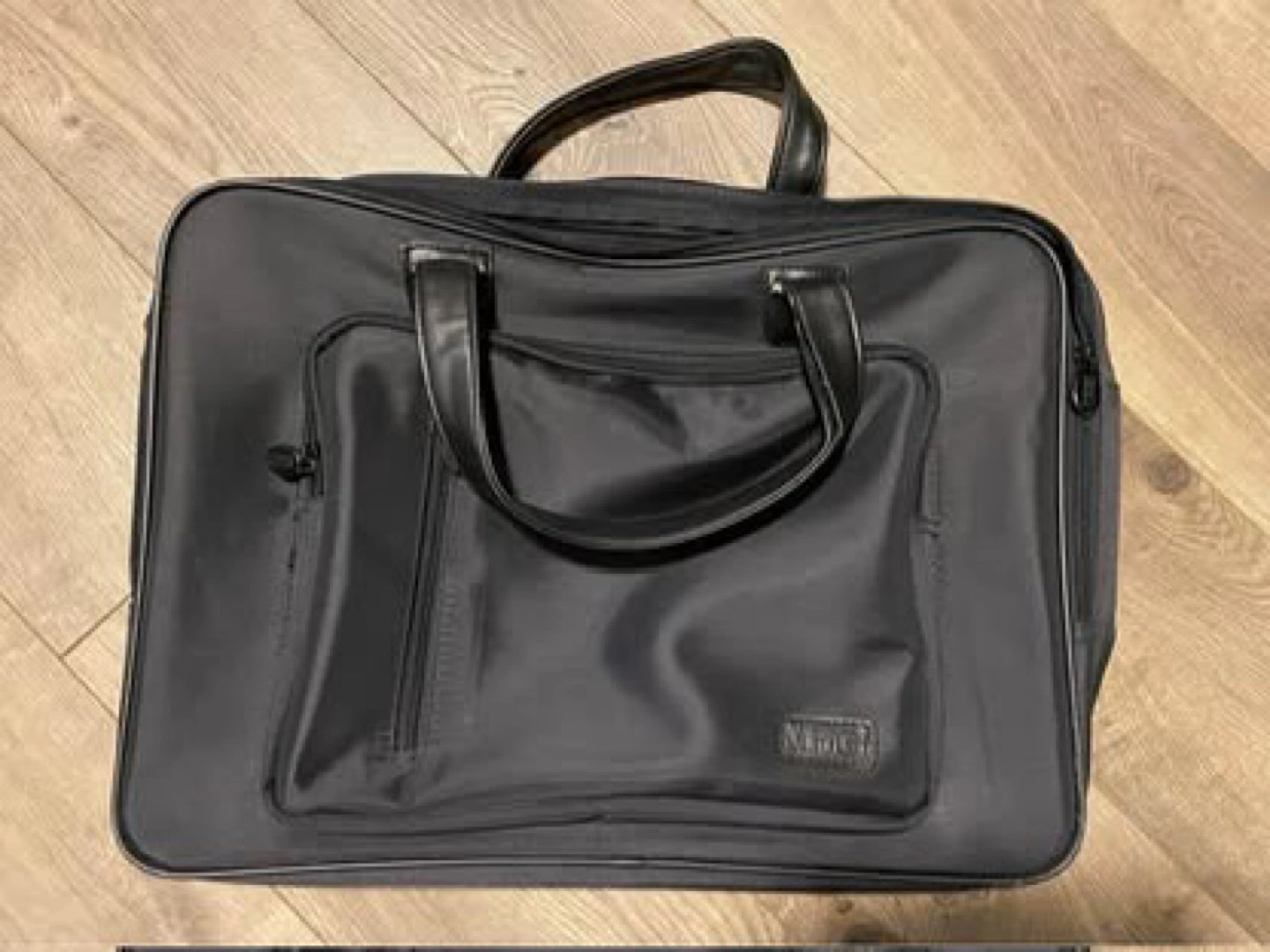 Here's a sleek black laptop bag that's perfect for carrying your essentials! It has a classic and professional look, great for work or school. Plenty of space inside to keep everything organized