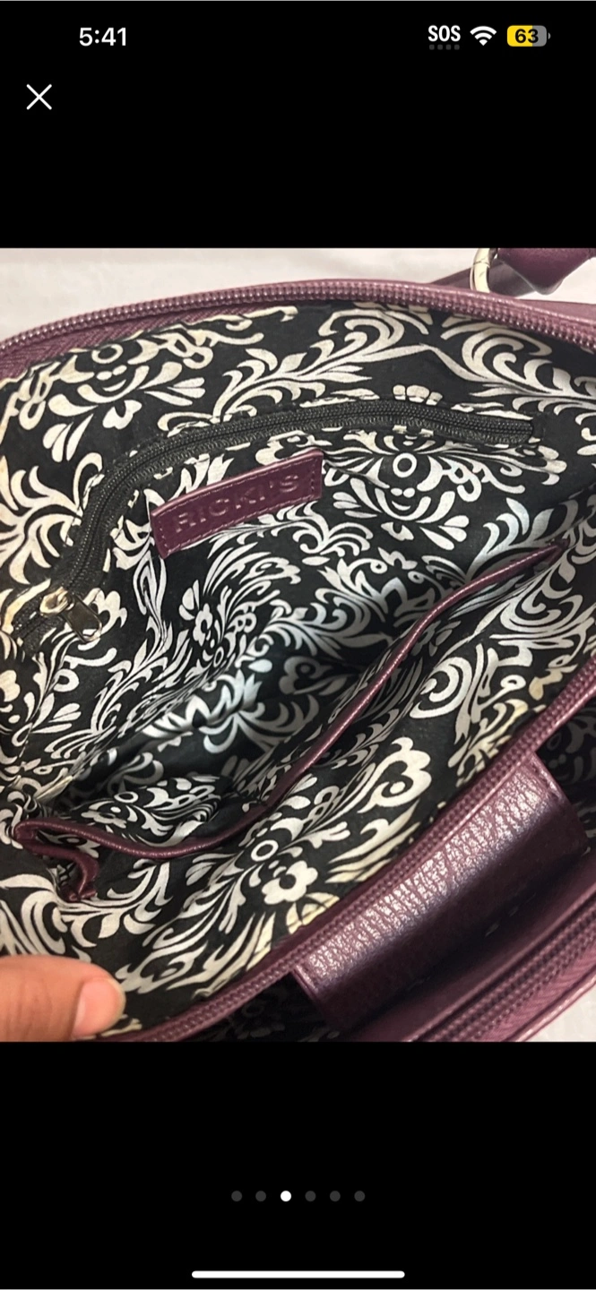 Here's a Rampage satchel bag in a lovely purple colour! It has a black and white patterned interior. It's in great condition and ready for a new home