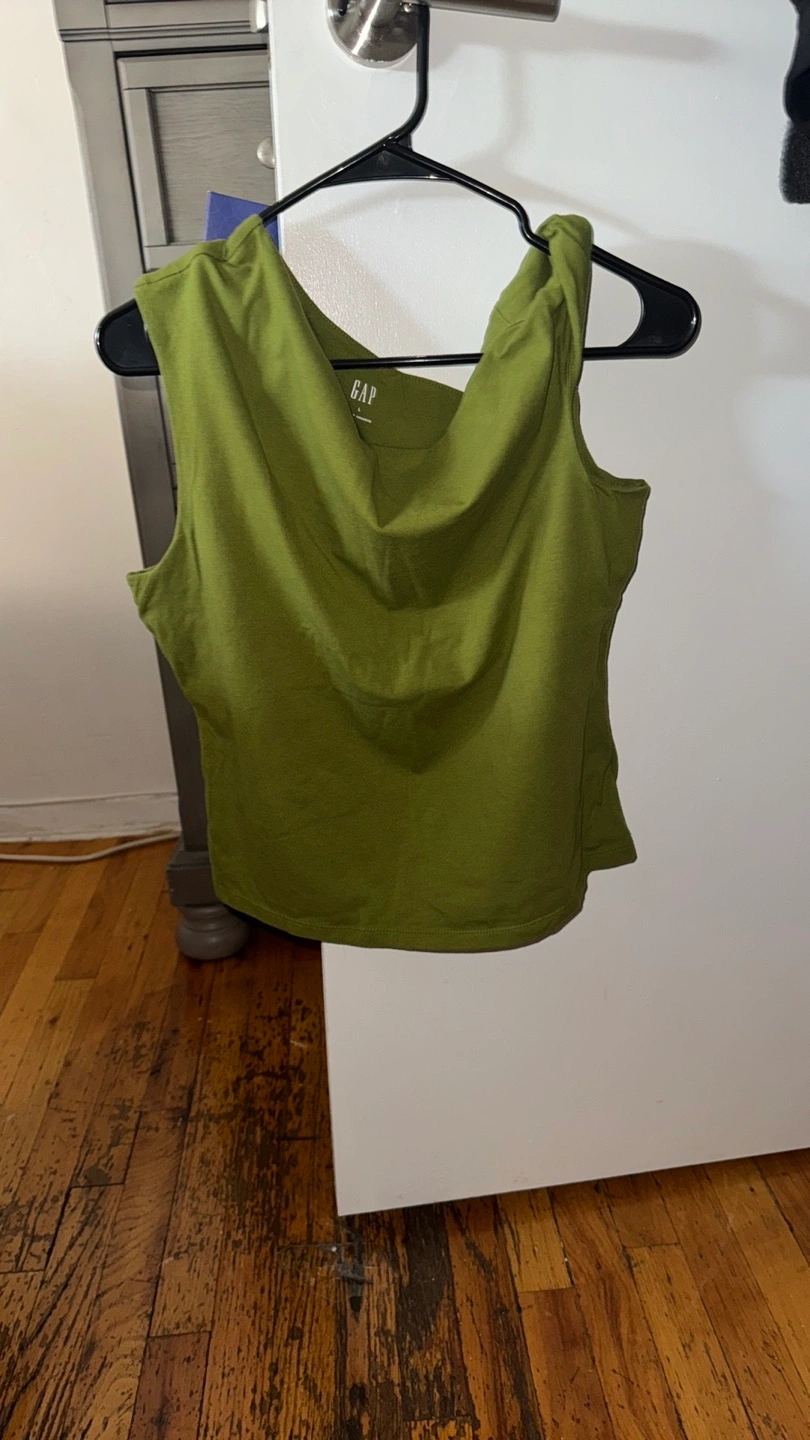 Selling a Gap tank top in olive green! It's a size large and in good condition. Great for layering or wearing on its own